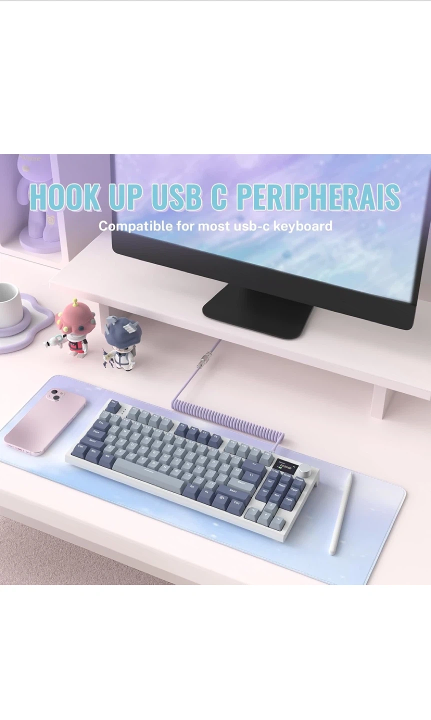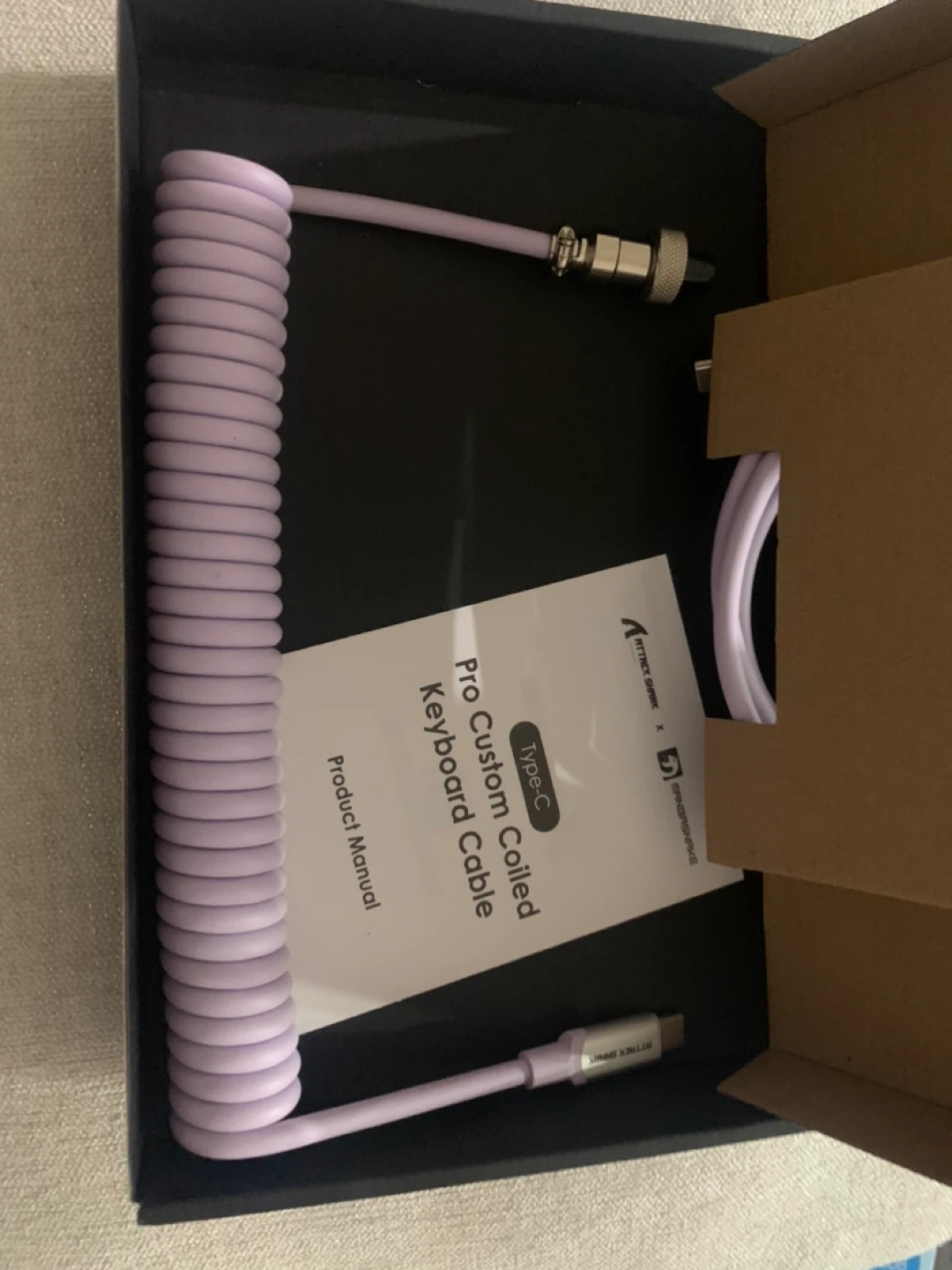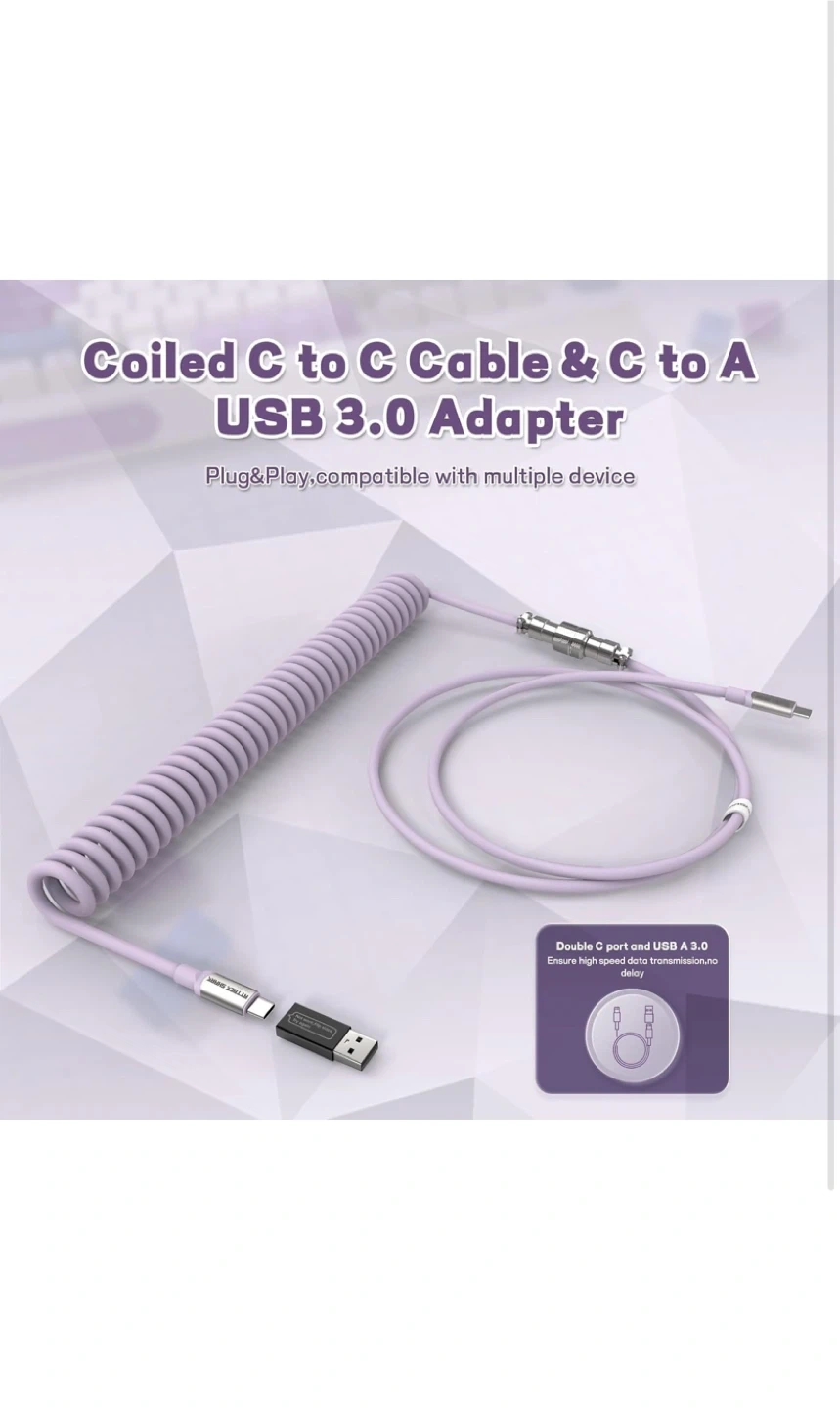 This is a MAMBASNAKE Pro Custom Coiled Keyboard Cable. It's a Type-C to C coiled cable with a USB C to A 3.0 adapter. Premier TPU material.