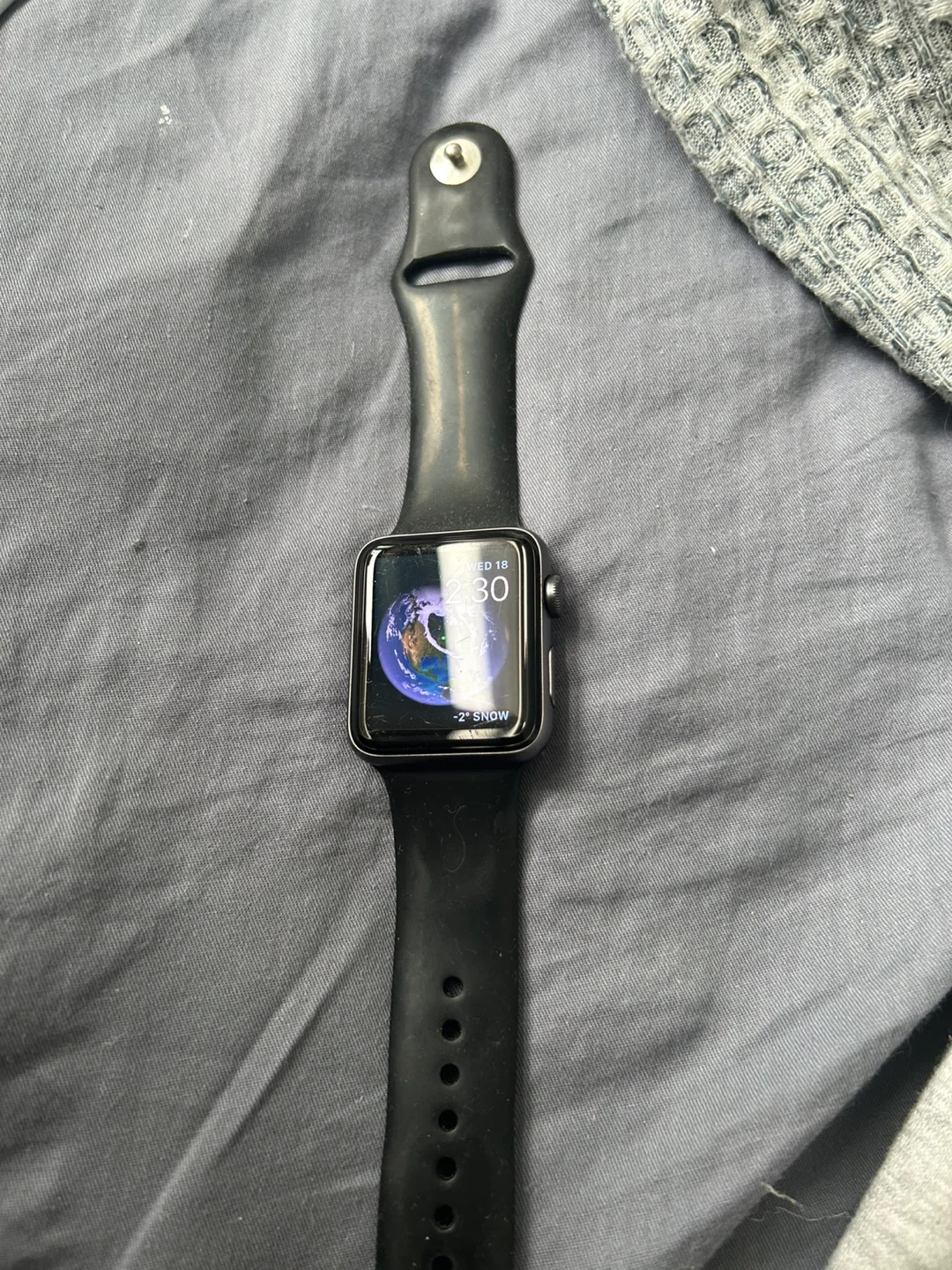 Selling an Apple Watch Series 3 in Space Grey. It's the 42mm model with GPS. This watch is perfect for tracking fitness and staying connected on the go.