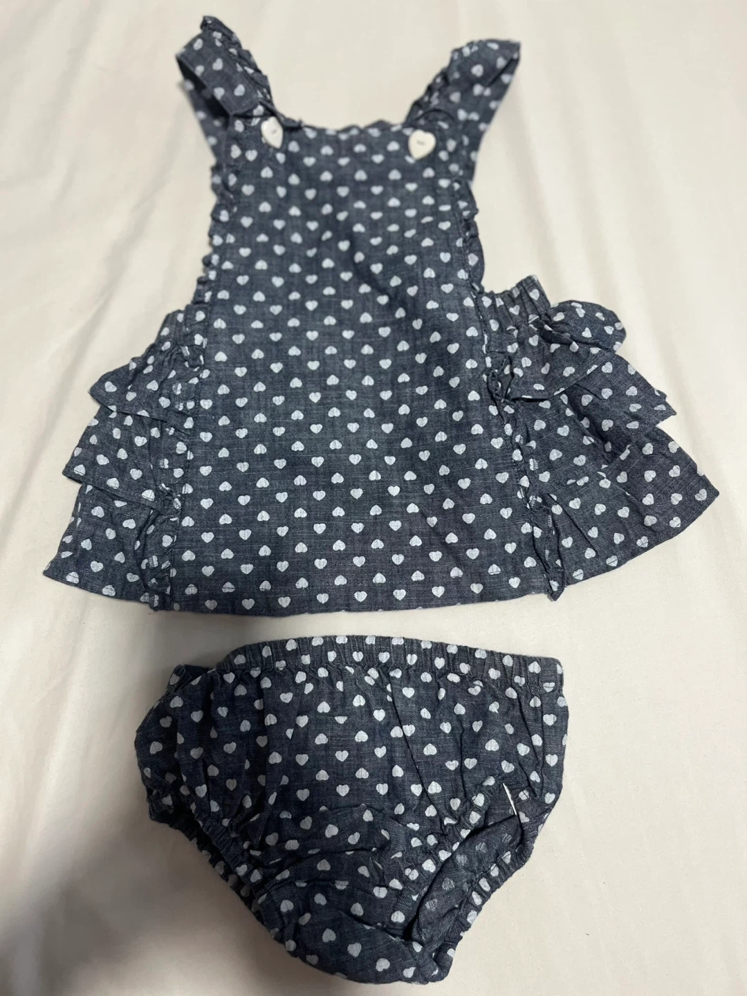 233Super cute baby romper and bloomer set from Joe Fresh! This adorable outfit is perfect for your little one, sized 6-12 months It features a sweet heart print on a soft, comfortable fabric. Only used once.