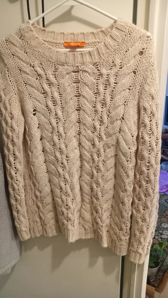 45Cozy Joe Fresh cream-coloured cable knit sweater! It's in great condition and perfect for staying warm on chilly days