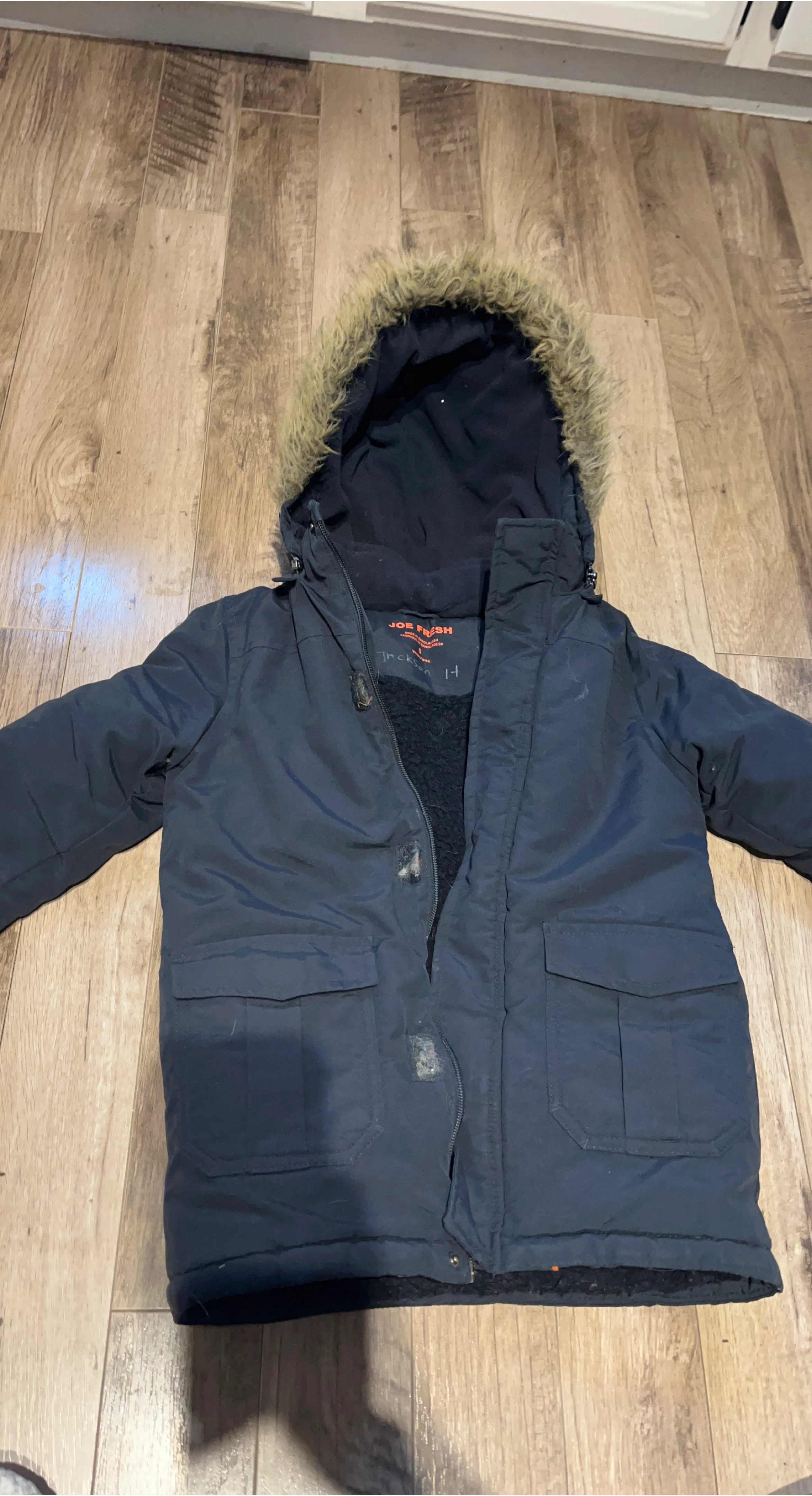 33Selling a Joe Fresh kids' winter jacket, perfect for keeping your little one warm this winter! It's a size 5 and features a cozy, fur-trimmed hood.