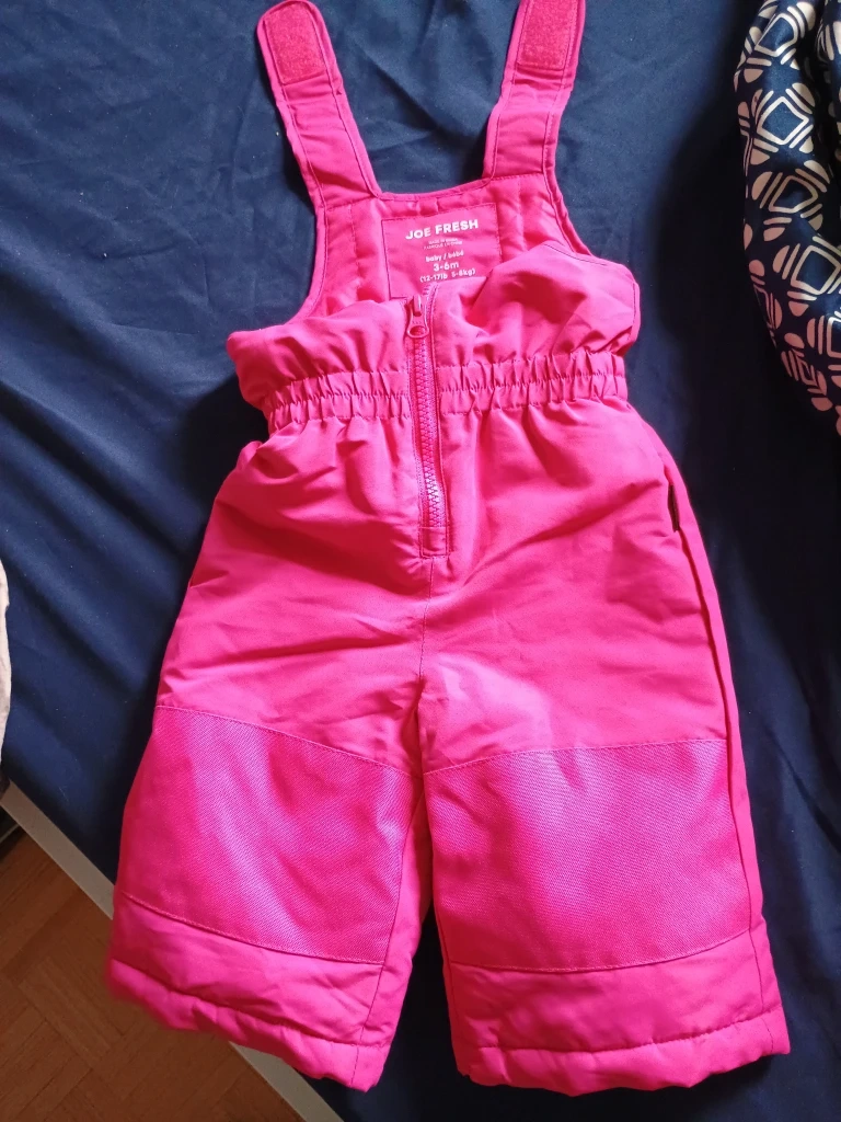 85These Joe Fresh snow pants are perfect for your little one! They're a vibrant pink and sized for 3-6 month olds (12-17lb, 5-8kg). Great for keeping baby warm and dry during winter outings