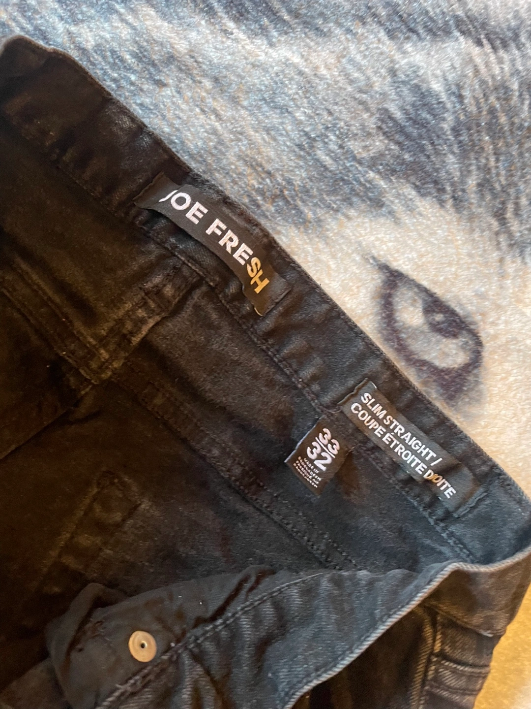 Selling a pair of Joe Fresh slim straight jeans in black. They are size 33/32. They are in good condition and ready for a new home!