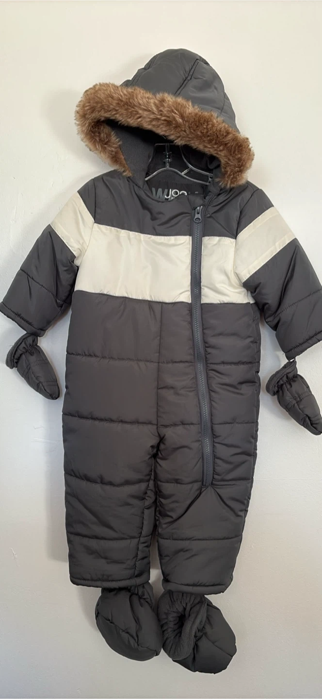 10Joe Fresh one piece snowsuit size 6 to 12 months with detachable boots and mittens. Pick up in Leduc only. $10