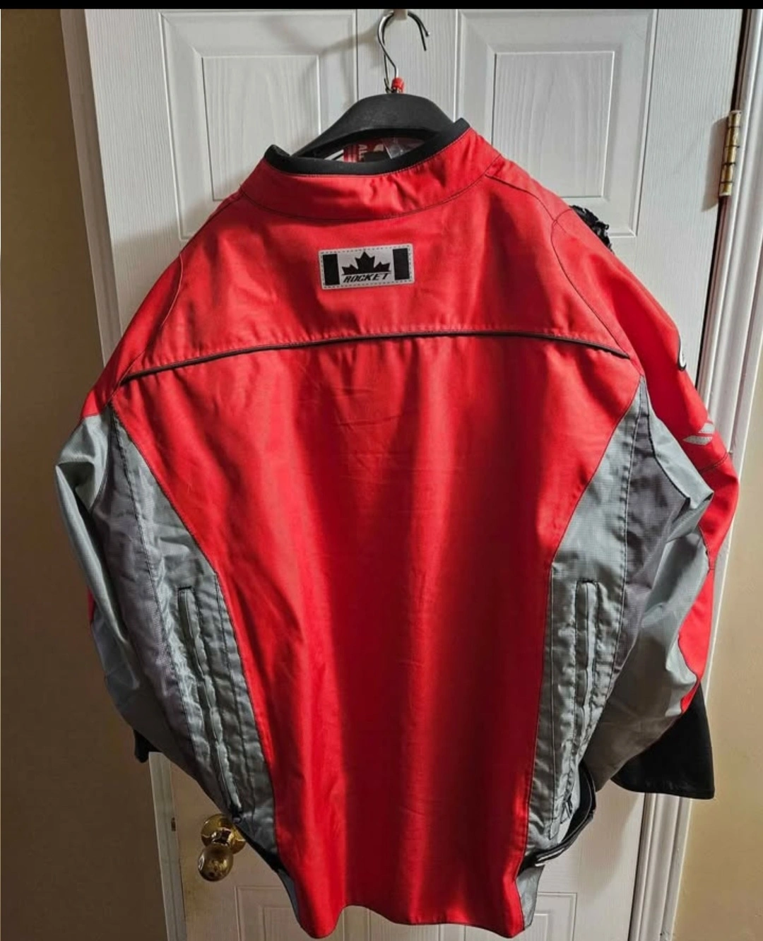 Selling a Joe Rocket motorcycle jacket in red and grey. It's in great shape and ready for the road! Features the Canadian flag on the back. It's a stylish and functional jacket for any rider. Worn maybe 5x . paid 180.00 asking 95.00 Mens 2X L