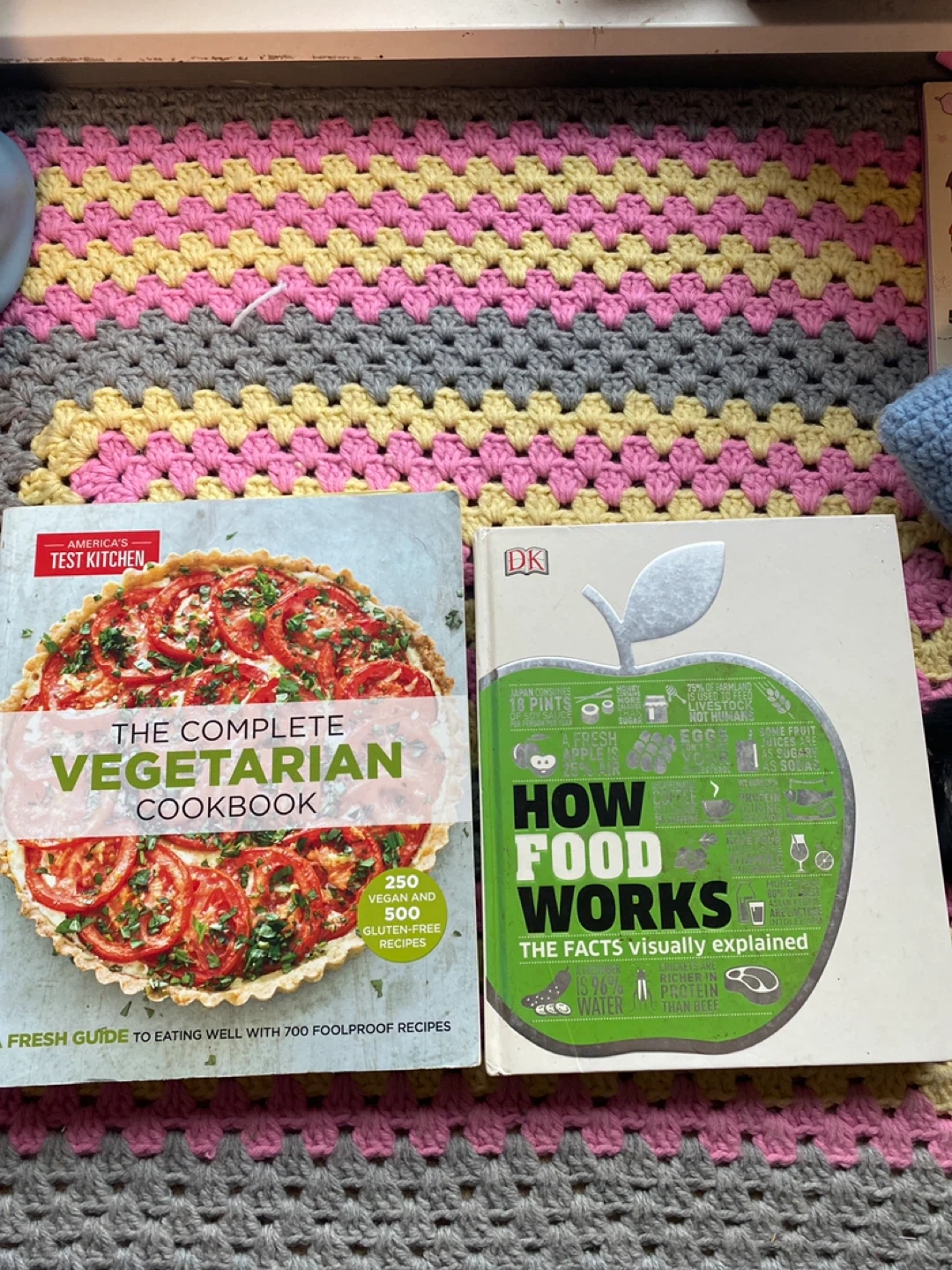 America's Test Kitchen presents The Complete Vegetarian Cookbook with 250 vegan and 500 gluten-free recipes. DK's How Food Works visually explains food facts, including water content and protein sources. These two cookbooks offer a great guide to eating well and understanding your food.