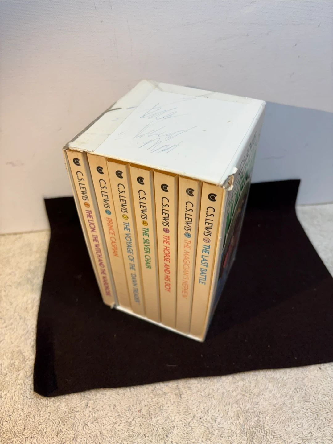 This is a 1970 vintage edition of The Classic Narnia wrong C S Lewis . This is the 7 book paperback set . Box has some issues, books are in good/great shape . Play co up st vital .
