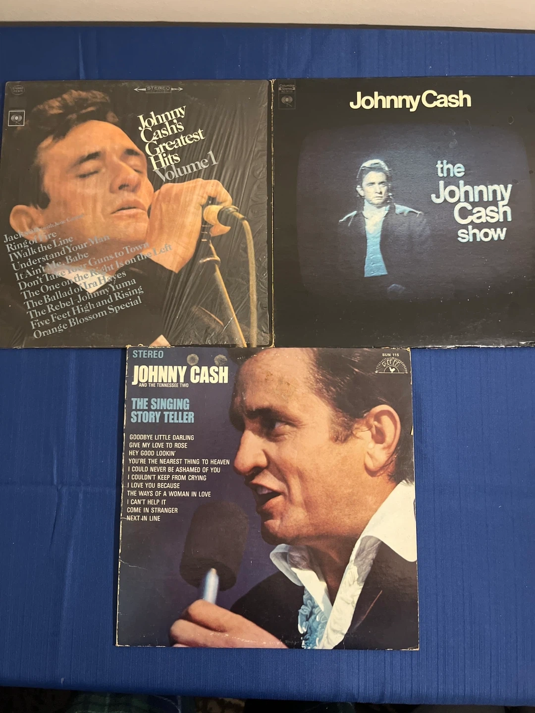 76Selling a collection of Johnny Cash vinyl records! Includes: - Johnny Cash's Greatest Hits Volume 1 - Johnny Cash - The Singing Story Teller - Johnny Cash - The Johnny Cash Show All records are in okay condition for their age and ready to spin!