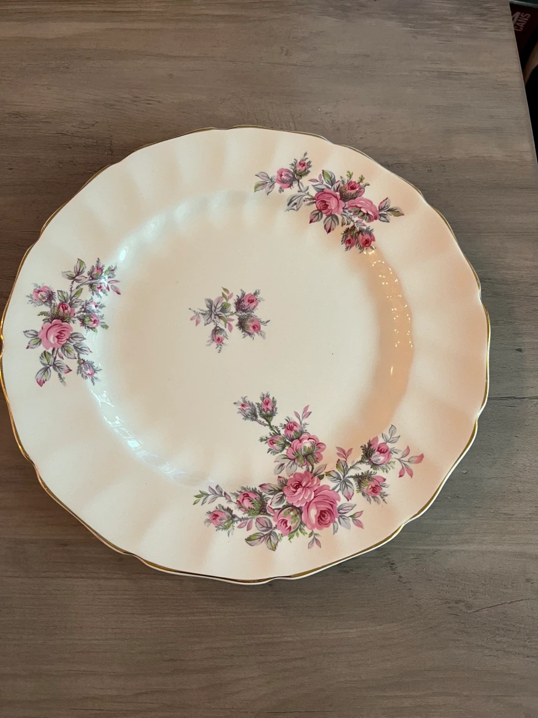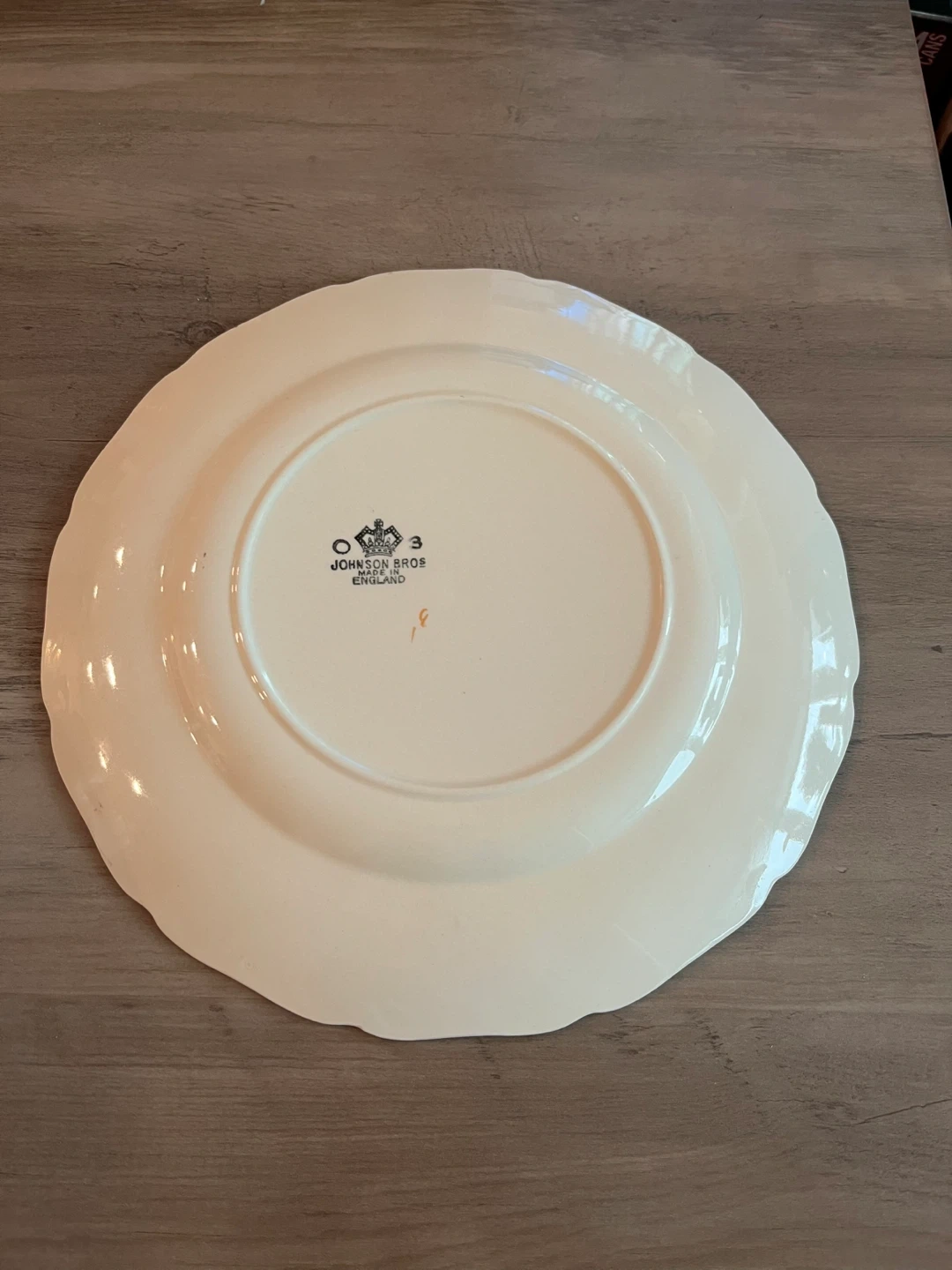 Selling a lovely Johnson Bros England plate! It features a beautiful floral design with pink roses and a gold trim. Perfect for adding a touch of vintage charm to your table setting.Total 5pcs.10inch size