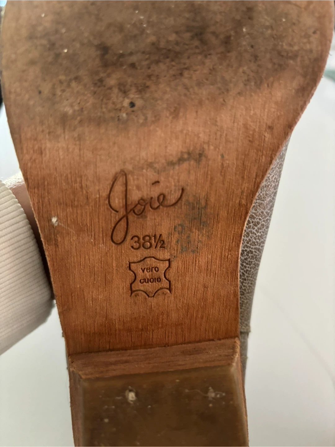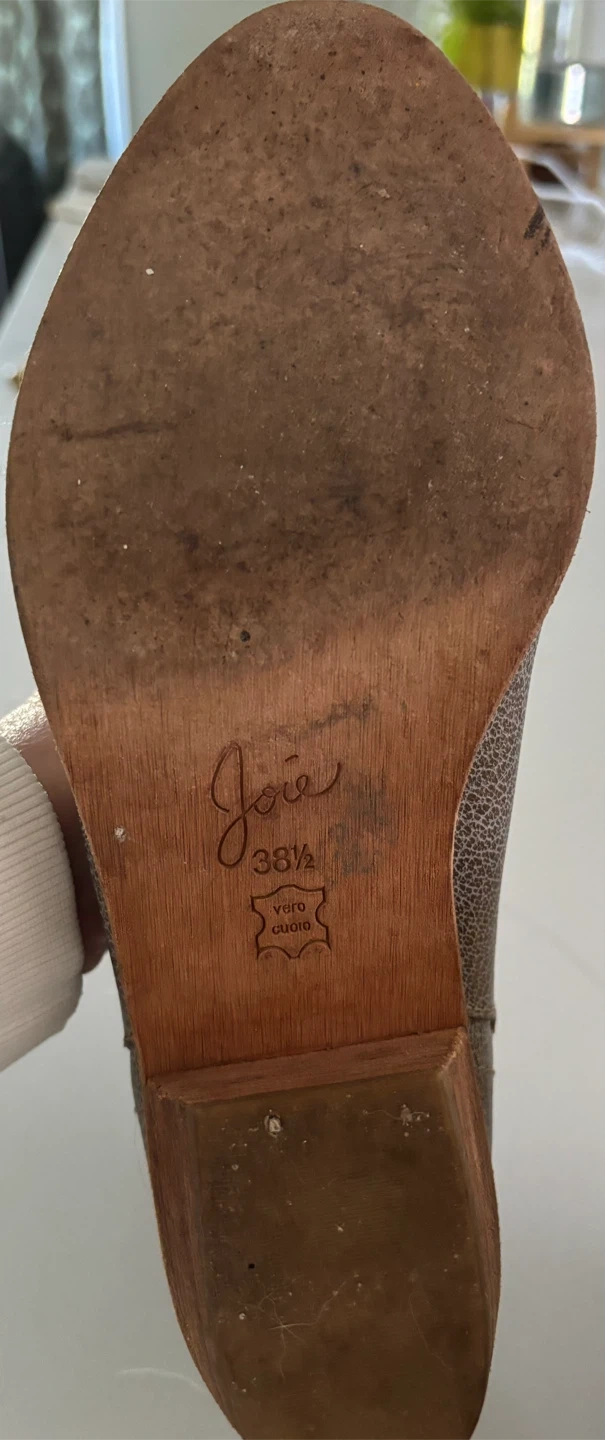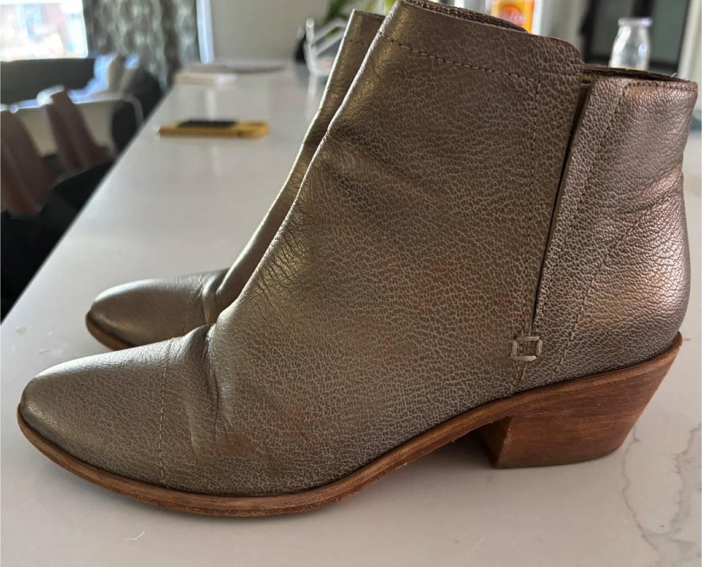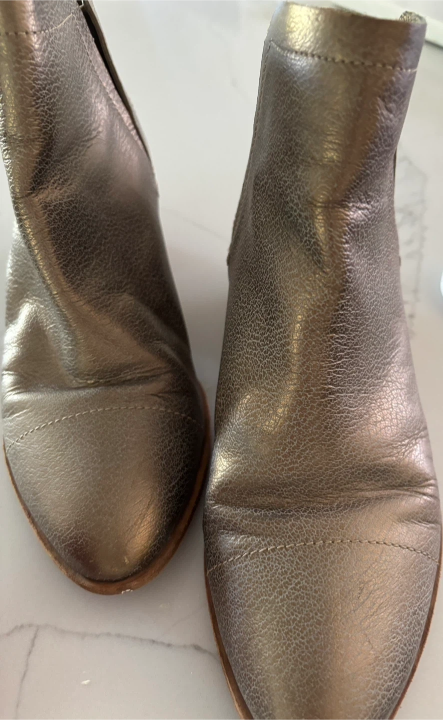 Selling a pair of Joie booties in size 8.5. They are a metallic leather colour and in good condition. The sole is marked with 'Vero Cuoio'.
