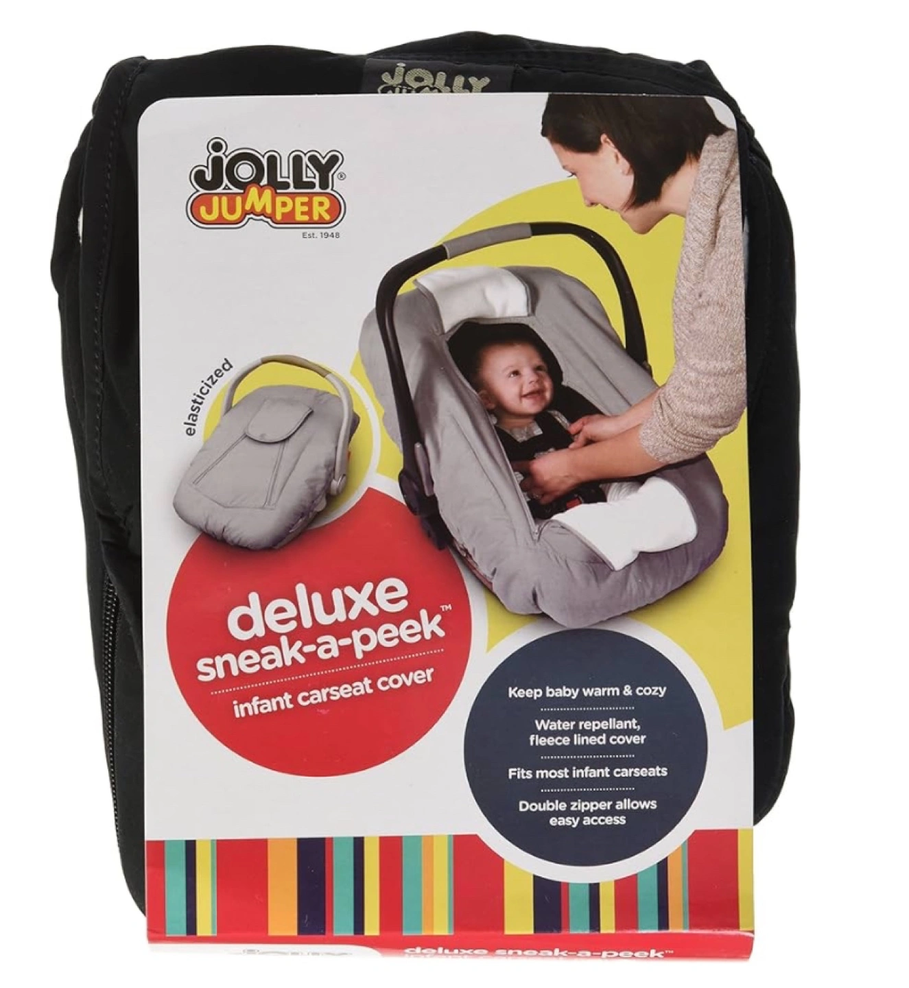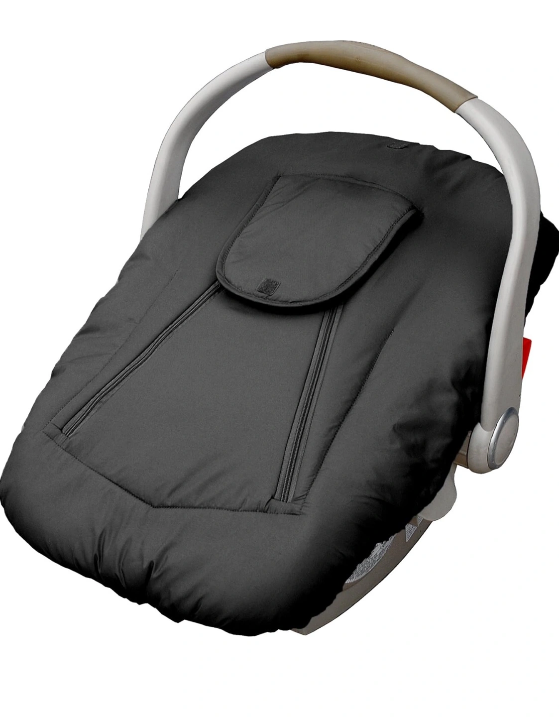 49Black infant carseat cover. Water repellent, fleece lined. Fits most infant carseats. Double zipper allows easy access. Perfect condition, no stains