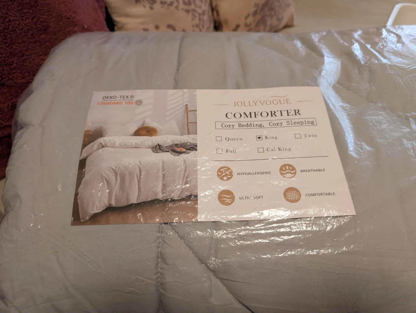 99Selling a brand new Jollyvogue comforter, still in its original packaging! It's a king size, perfect for cozy bedding and sleeping. This comforter is hypoallergenic, breathable, ultra-soft, and comfortable, ensuring a great night's sleep