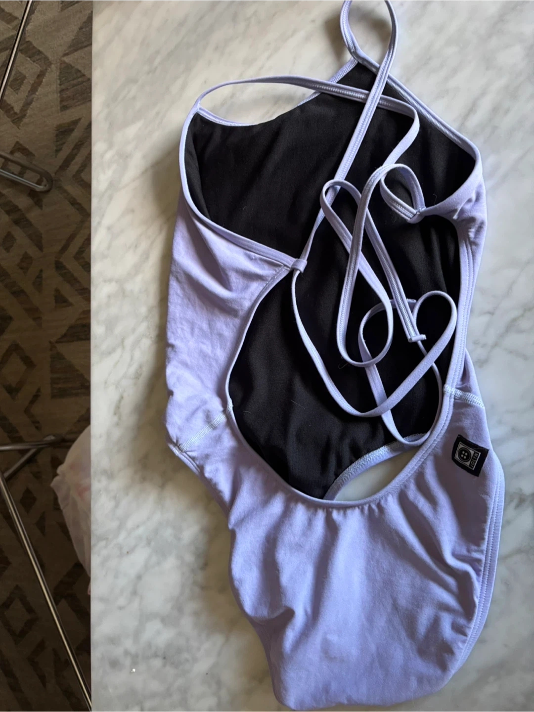 1000+Selling a Jolyn Jackson swimsuit in size 32. It's a lovely lavender colour with a black interior. Perfect for swimming laps or lounging by the pool