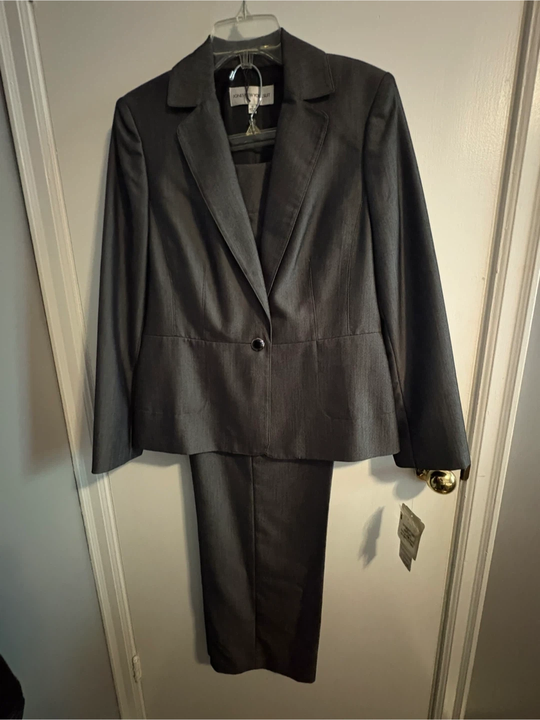 10Jones New York women's suit. Brand new, never worn. Size 12, grey. Comes with the jacket and pants.