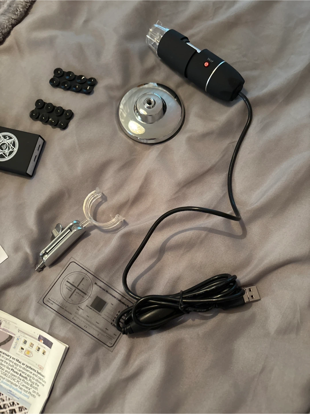 60Selling a brand new never before used Jiusion Wifi digital microscope. It comes with a stand, case, and various accessories as pictured. Perfect for hobbyists or anyone interested in exploring the microscopic world!