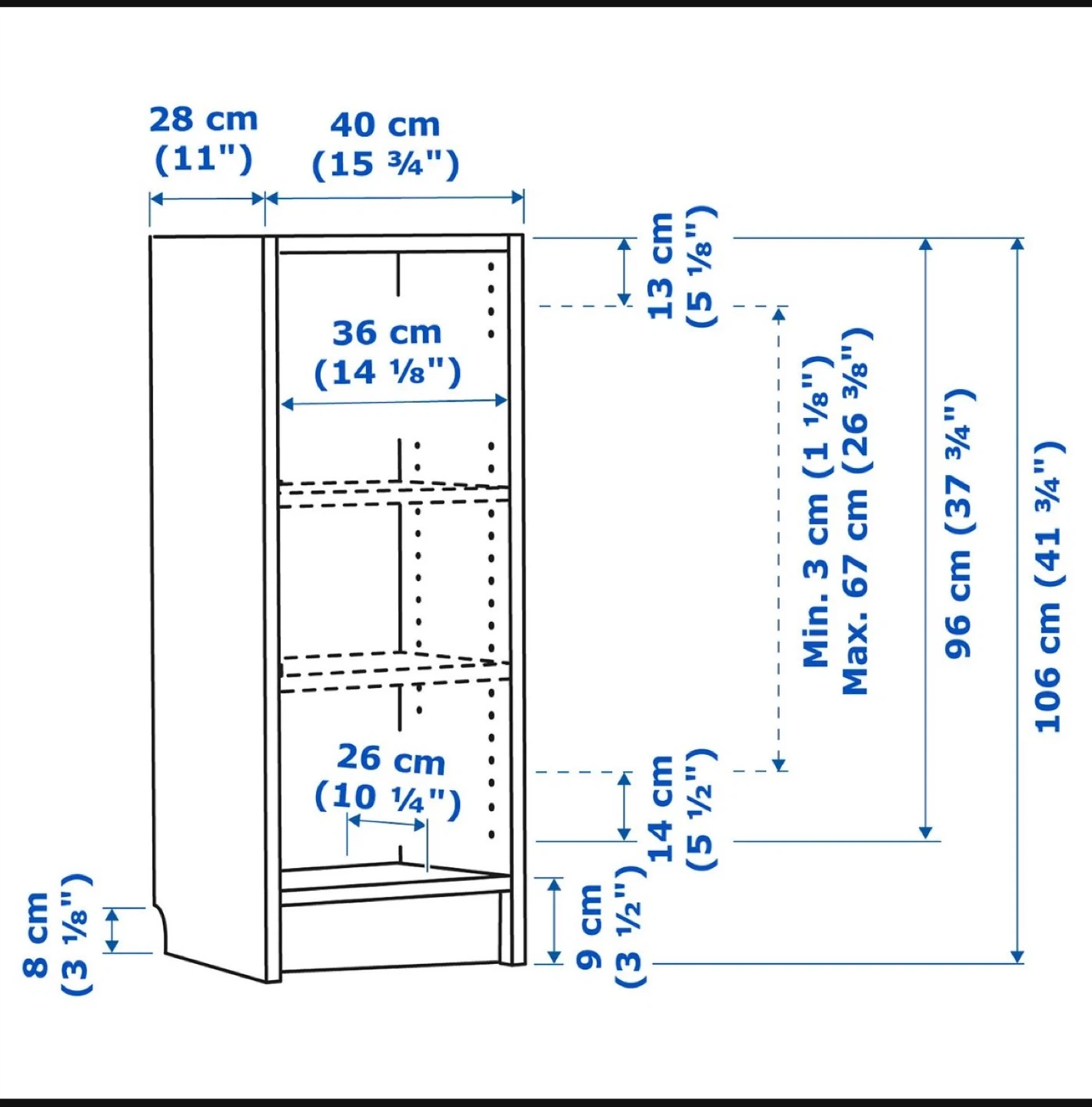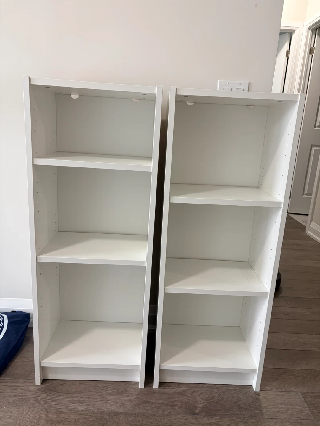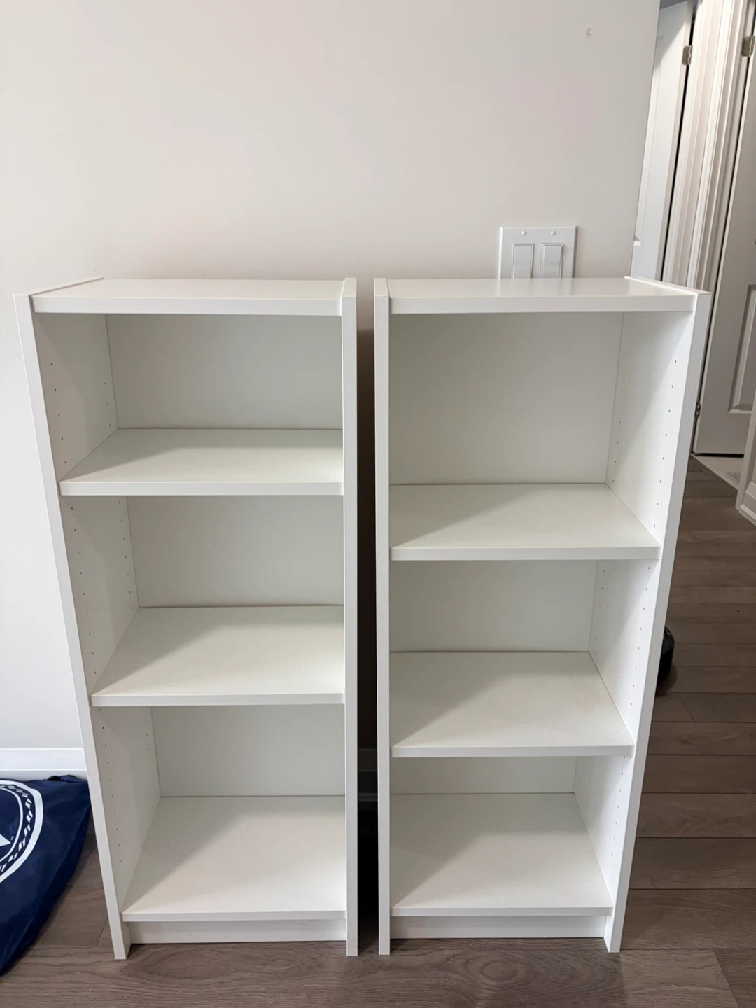 Selling two IKEA BILLY bookcases in white. Each measures 40cm wide, 28cm deep, and 106cm tall. Great for books or display or extra storage!