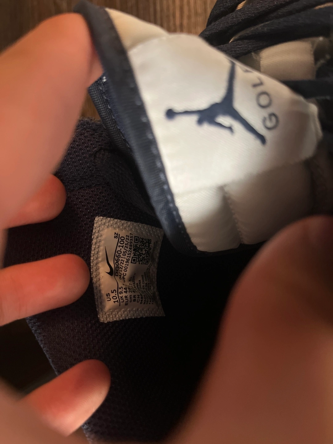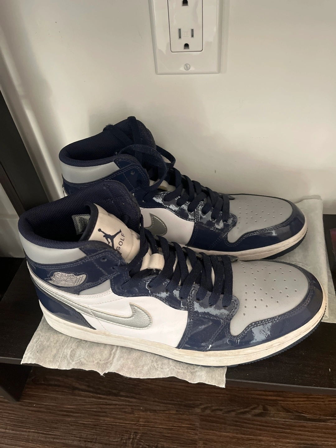 Selling a pair of Jordan 1 Golf shoes in size 10.5 US. They are in good condition and ready for the golf course!