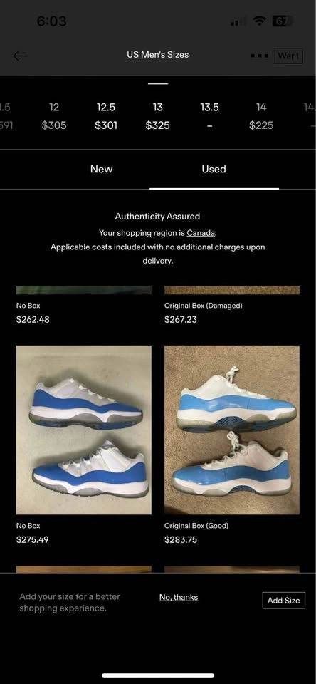 Size 13 men’s Minimal creasing NO BOX Barely Worn Purchased in 2019 and have been kept well Authenticated using POIZON and proof of purchase from Grailed. Pickup around King George Hub in Surrey.