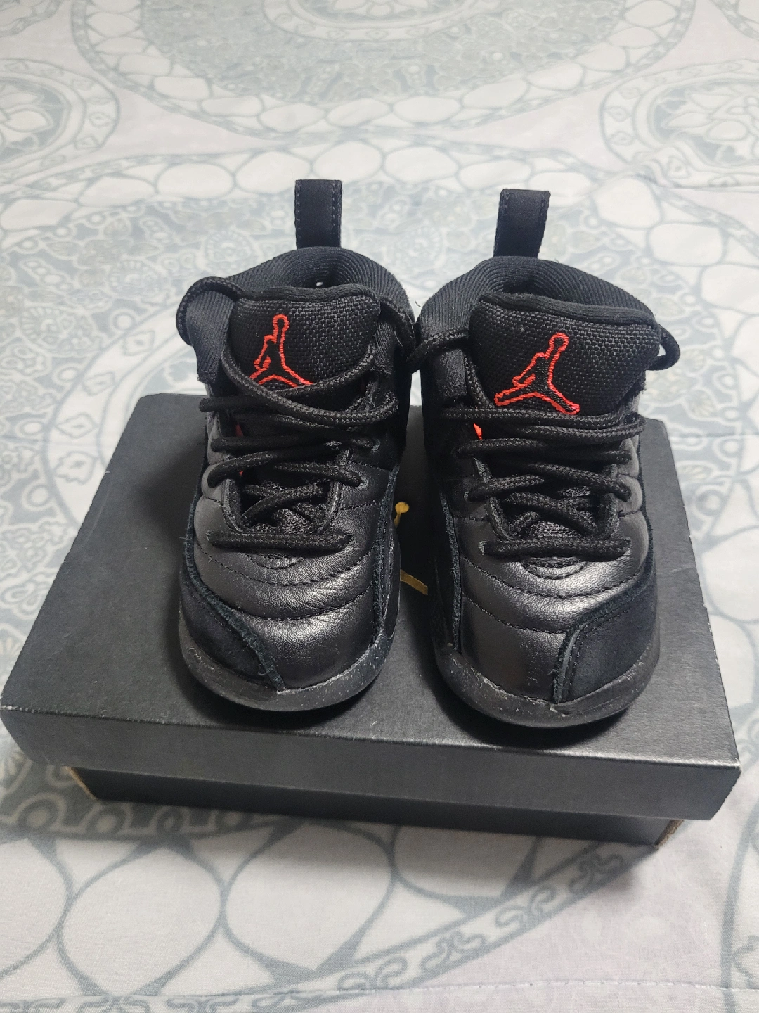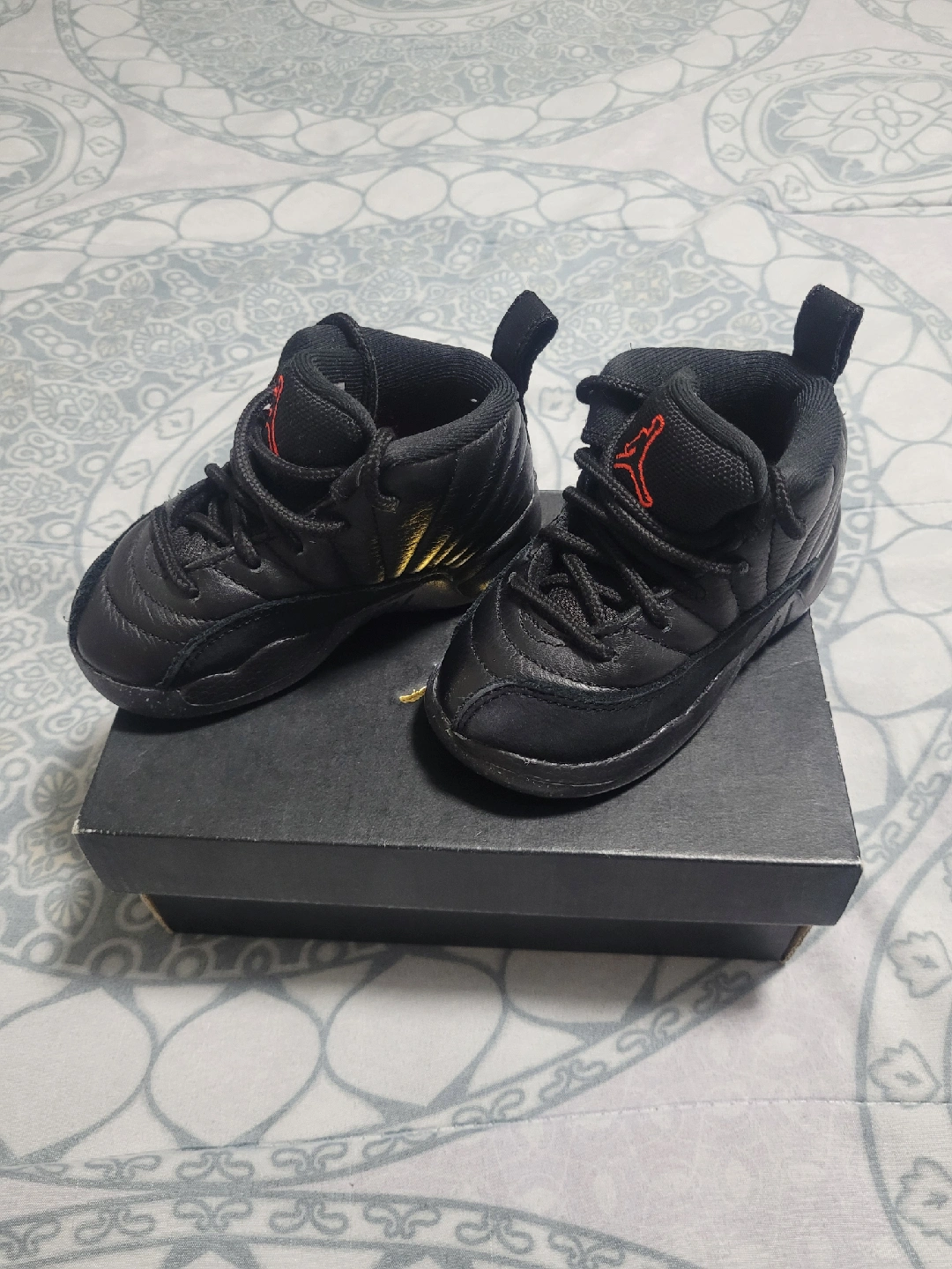 Selling a pair of Jordan 12 Retro toddler shoes in black! These are in great condition and come with the original box. The size is a US 6 for toddlers. Perfect for your little one to step out in style! Only worn a couple times.