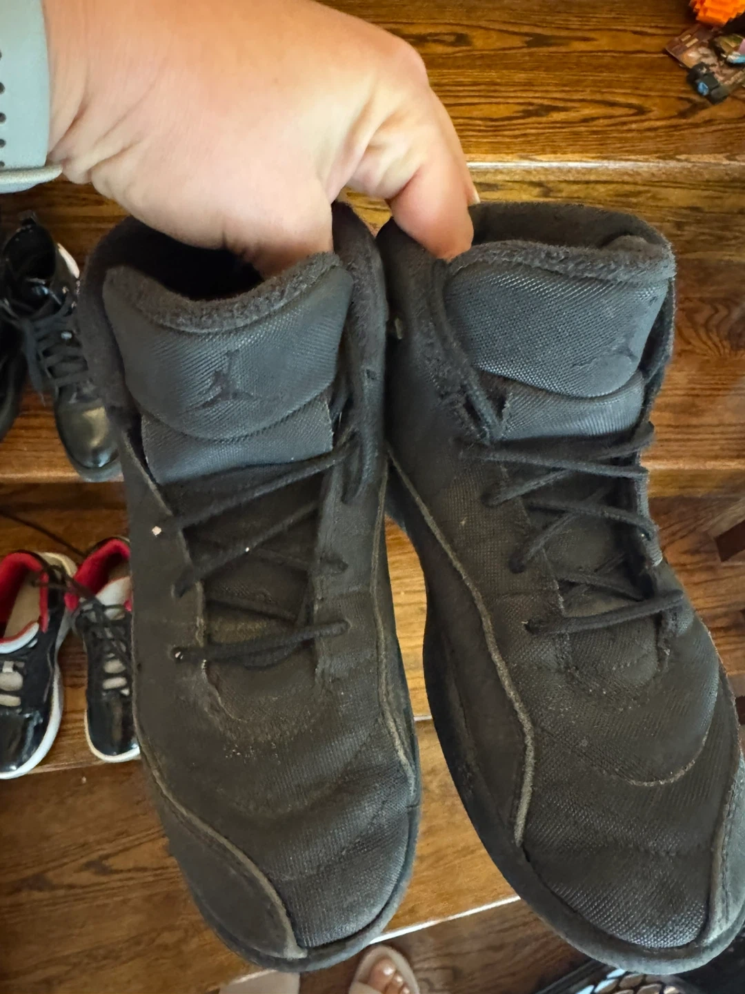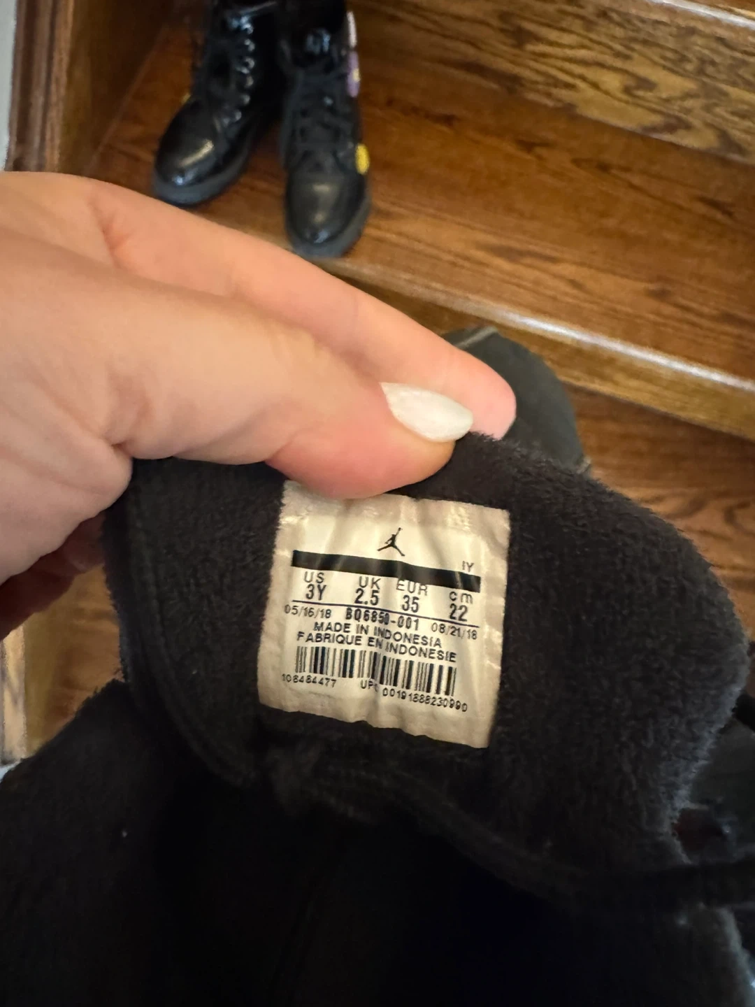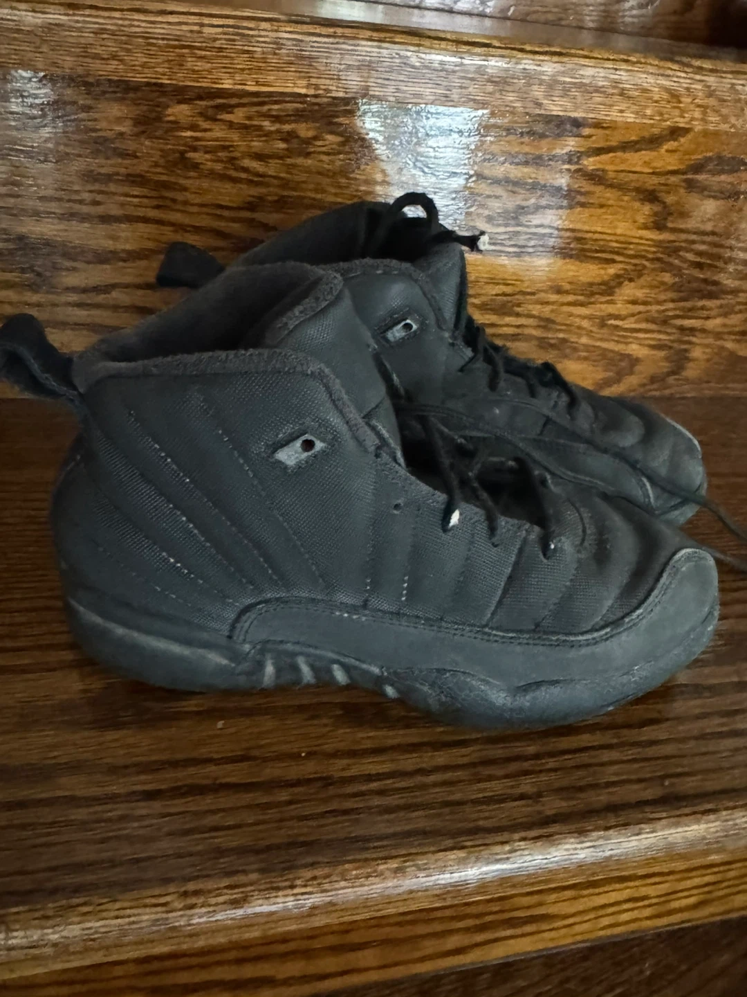 15Selling a pair of Jordan 12 Retro shoes in black, youth size 3Y. These are WINTERISED (fleece lined) They're in good condition and ready for a new home but need new laces.