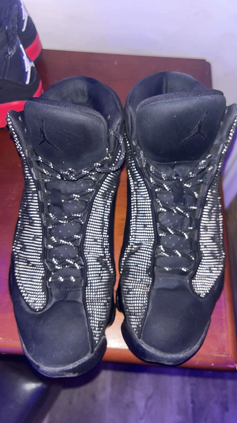 Selling a pair of Jordan 13 Retro sneakers in black. Text me if you wanna see a video of them they reflect HMU for trades or cash offers
