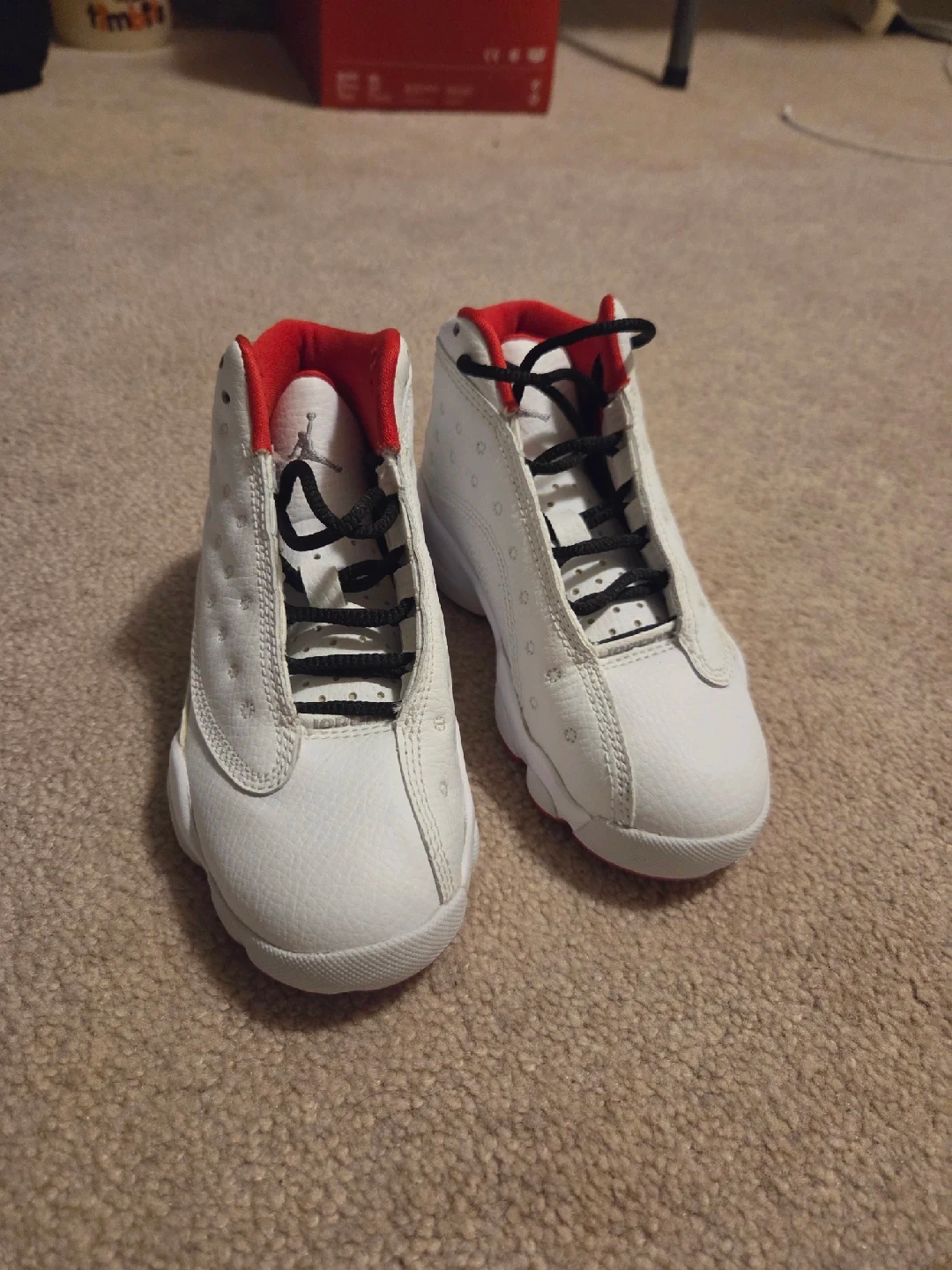 15These Jordan 13 Retro toddler shoes are in great shape! They're a size 6C and feature a white and red colourway. Perfect for your little one!