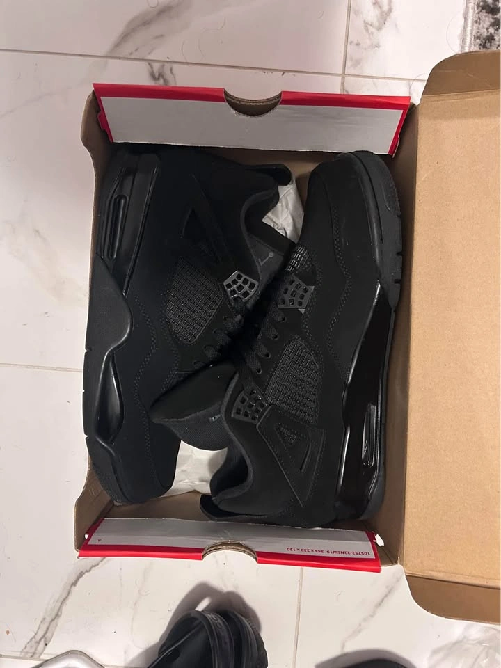 Jordan 4 “Black Cat” – Size 12 (US) • Brand new, never worn • No original box, but will come in a red Nike box • Clean all-black colorway, very popular and hard to find Asking 350$ (OBO). Pickup only, serious buyers only.