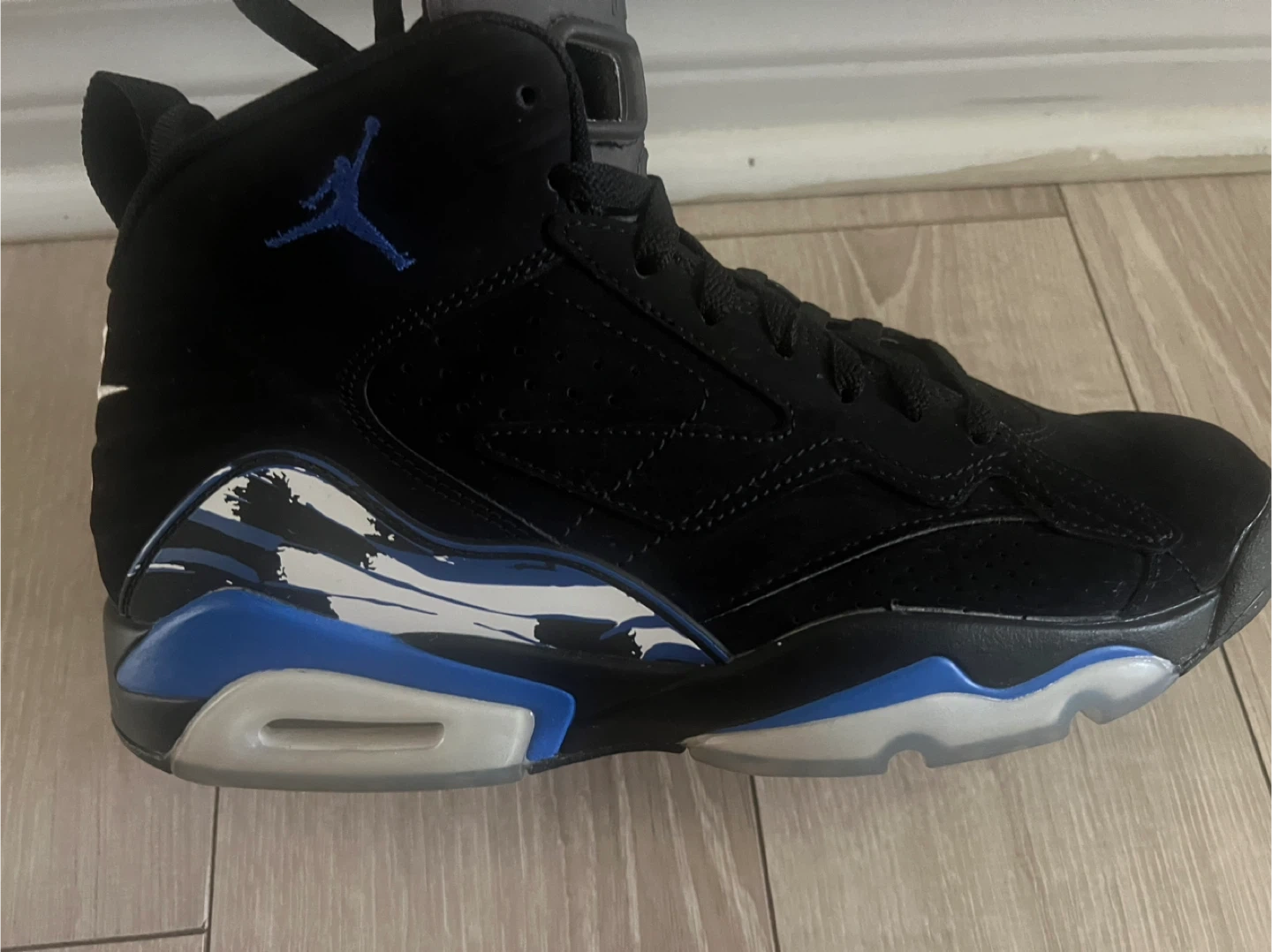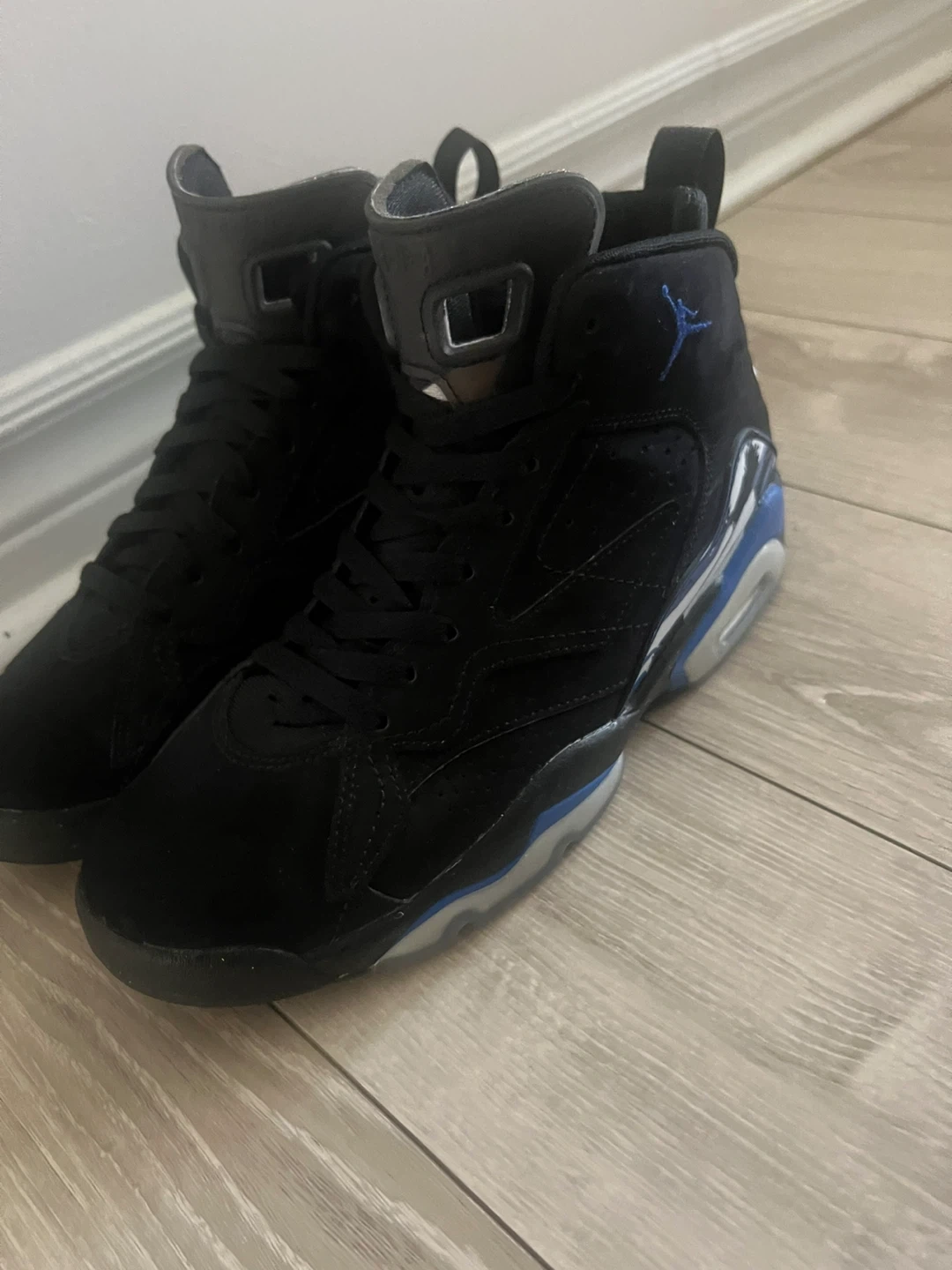 38Selling a pair of Jordan 6 MVP sneakers in black and blue. They are in good condition and ready for a new home!