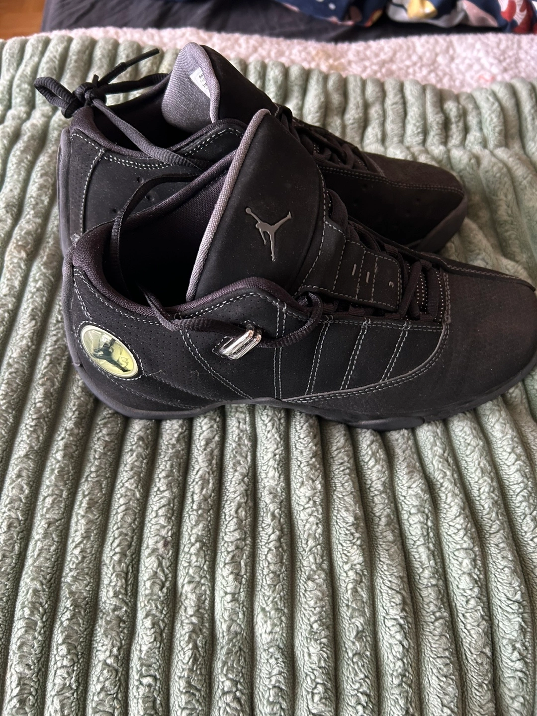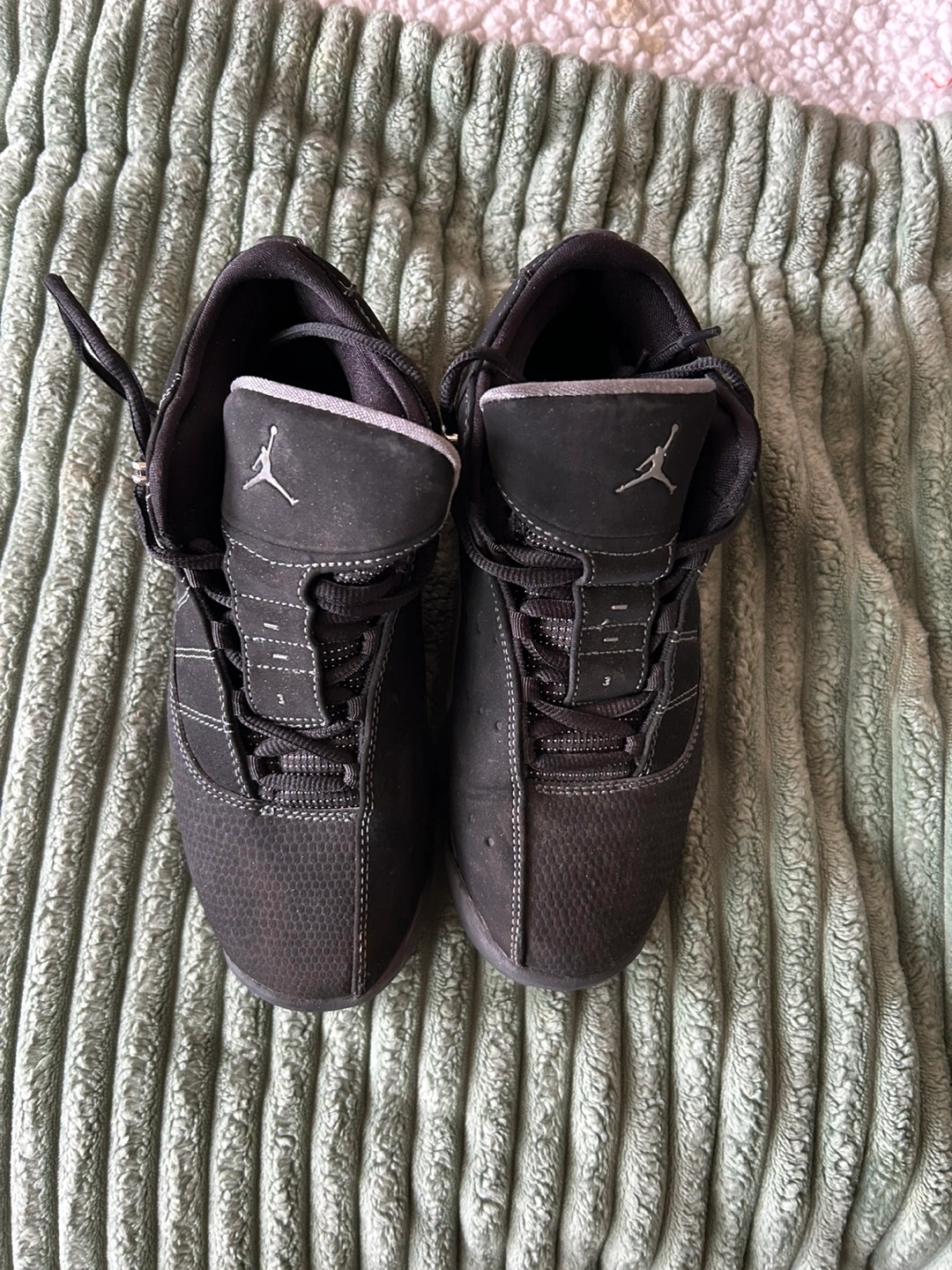 22Black sneakers featuring a textured design, with grey accents. Features a laced closure. They have the brand logo on the side. Finding a great pair of sneakers can be a relaxing experience. Brand new never worn retro Jordan shoes