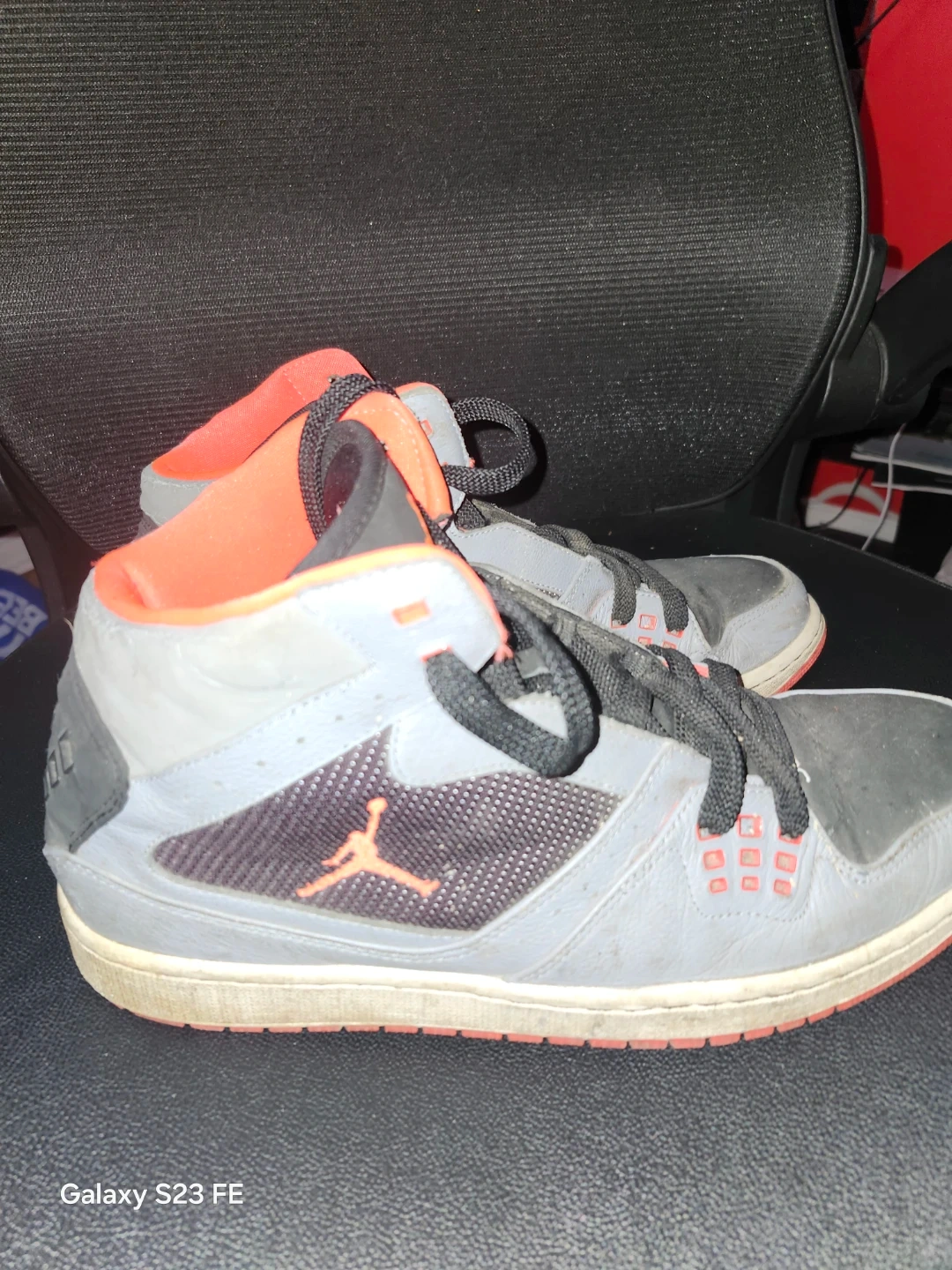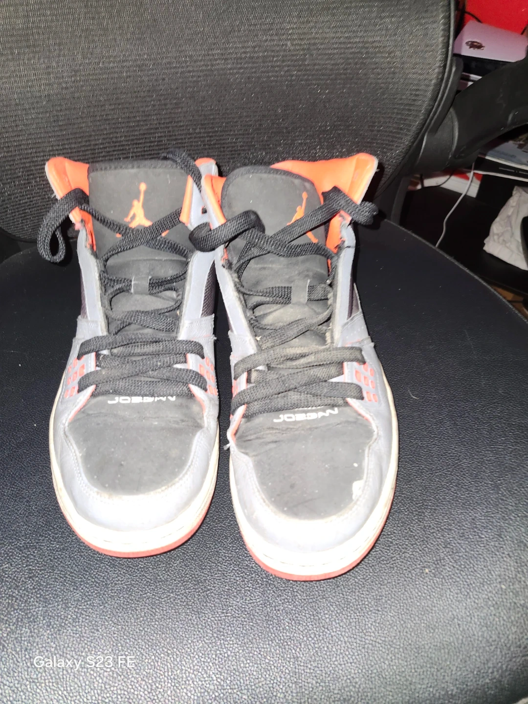 15Selling a pair of Jordan Flight 45 high top sneakers in size 9. They show some signs of wear but are still in good condition for casual wear or hitting the court. The classic Jordan design is always in style!