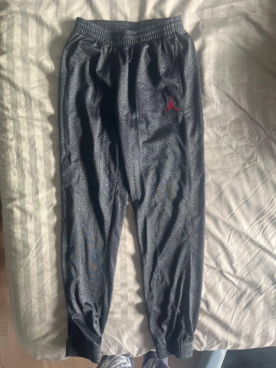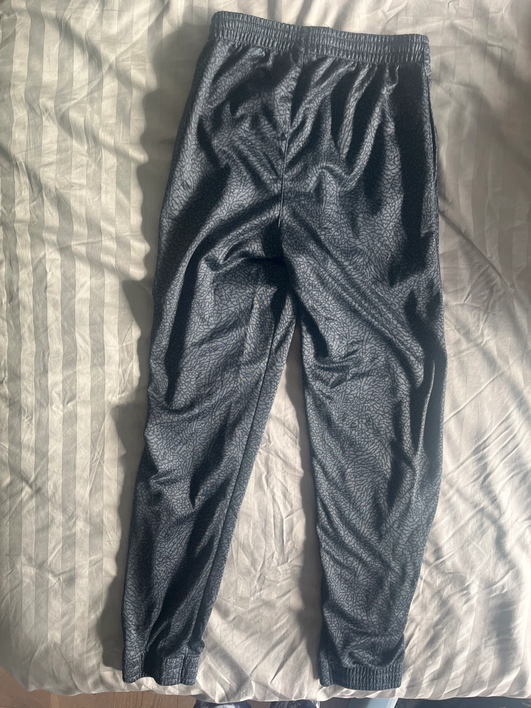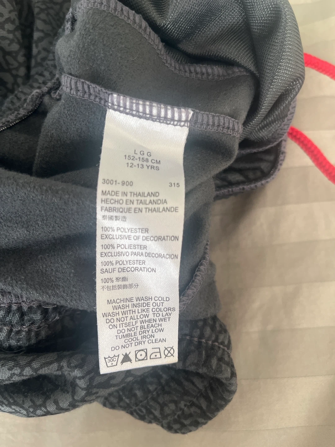 These Jordan joggers are in great condition and ready for a new home! They feature a cool grey patterned design with the iconic Jordan logo in red. Suitable for ages 12-13 years or height 152-158 cm. Made of 100% polyester, perfect for staying comfortable and active