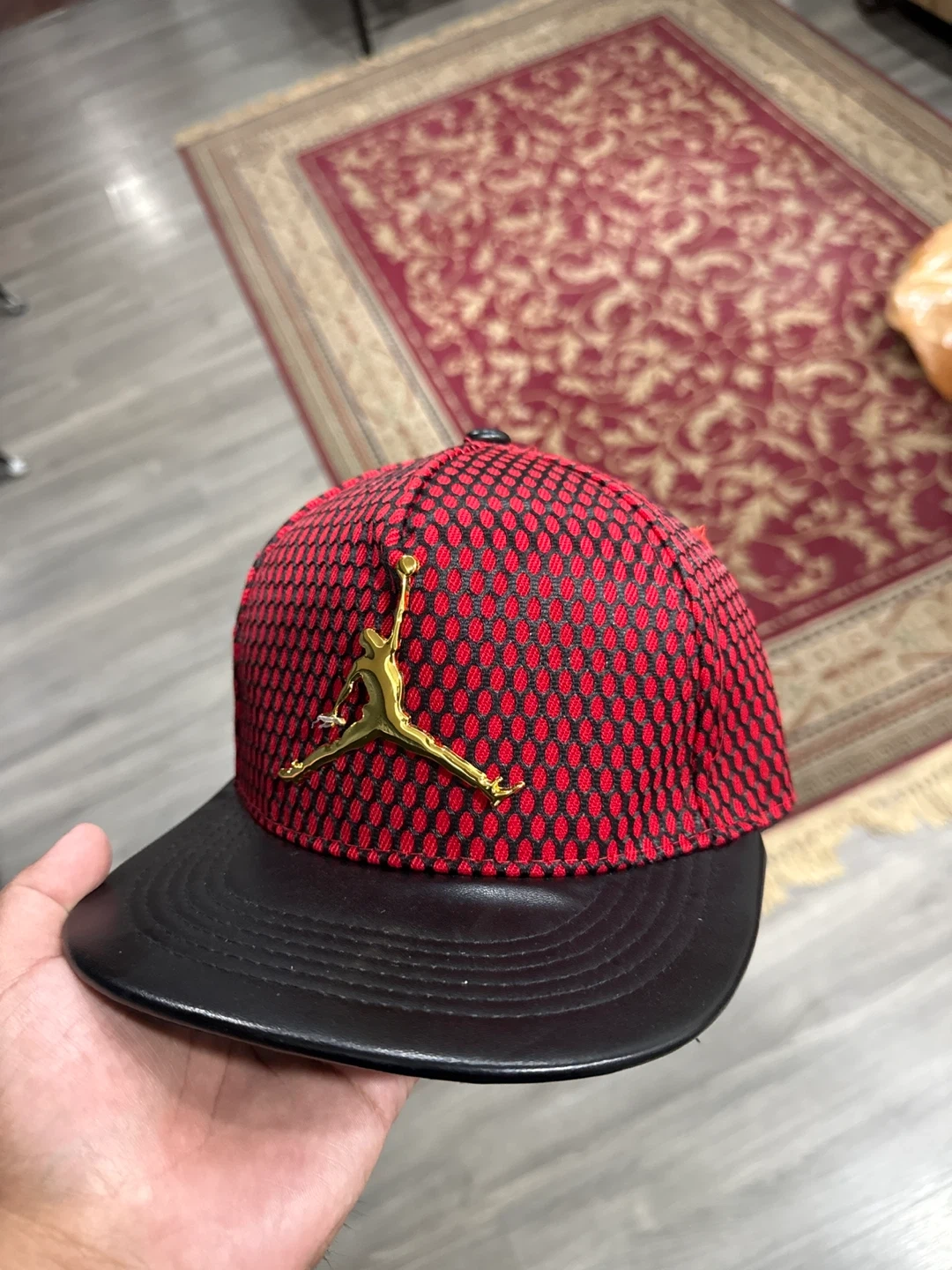 13Selling a Jordan hat in red and black! It has a gold Jordan logo on the front. The hat is in good condition and ready for a new home