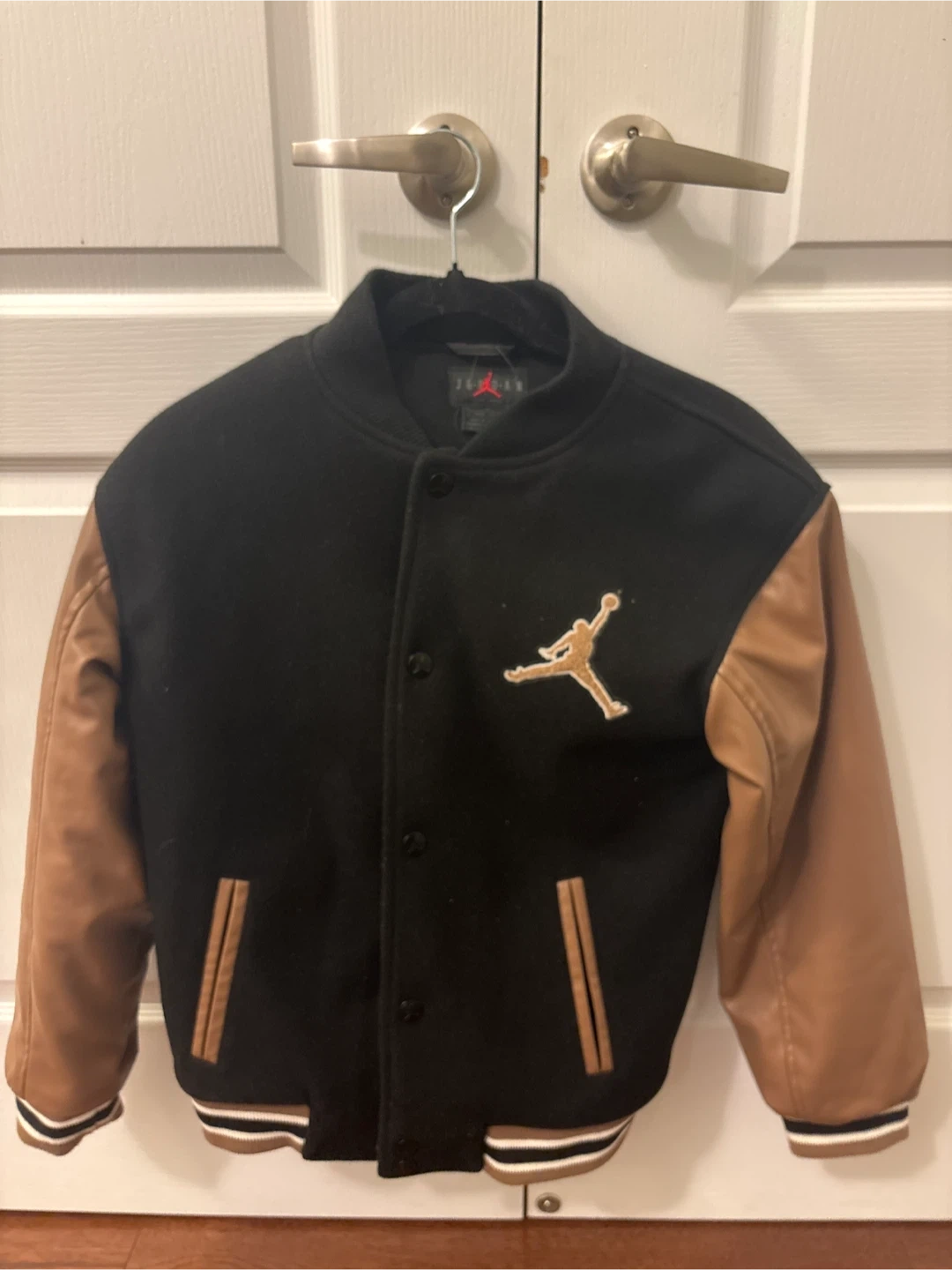 10Selling a Jordan kids' varsity jacket in excellent condition! It's a size L, suitable for kids aged 12-13 years with a height of 147-153cm. The jacket features a classic varsity design with the Jordan logo.