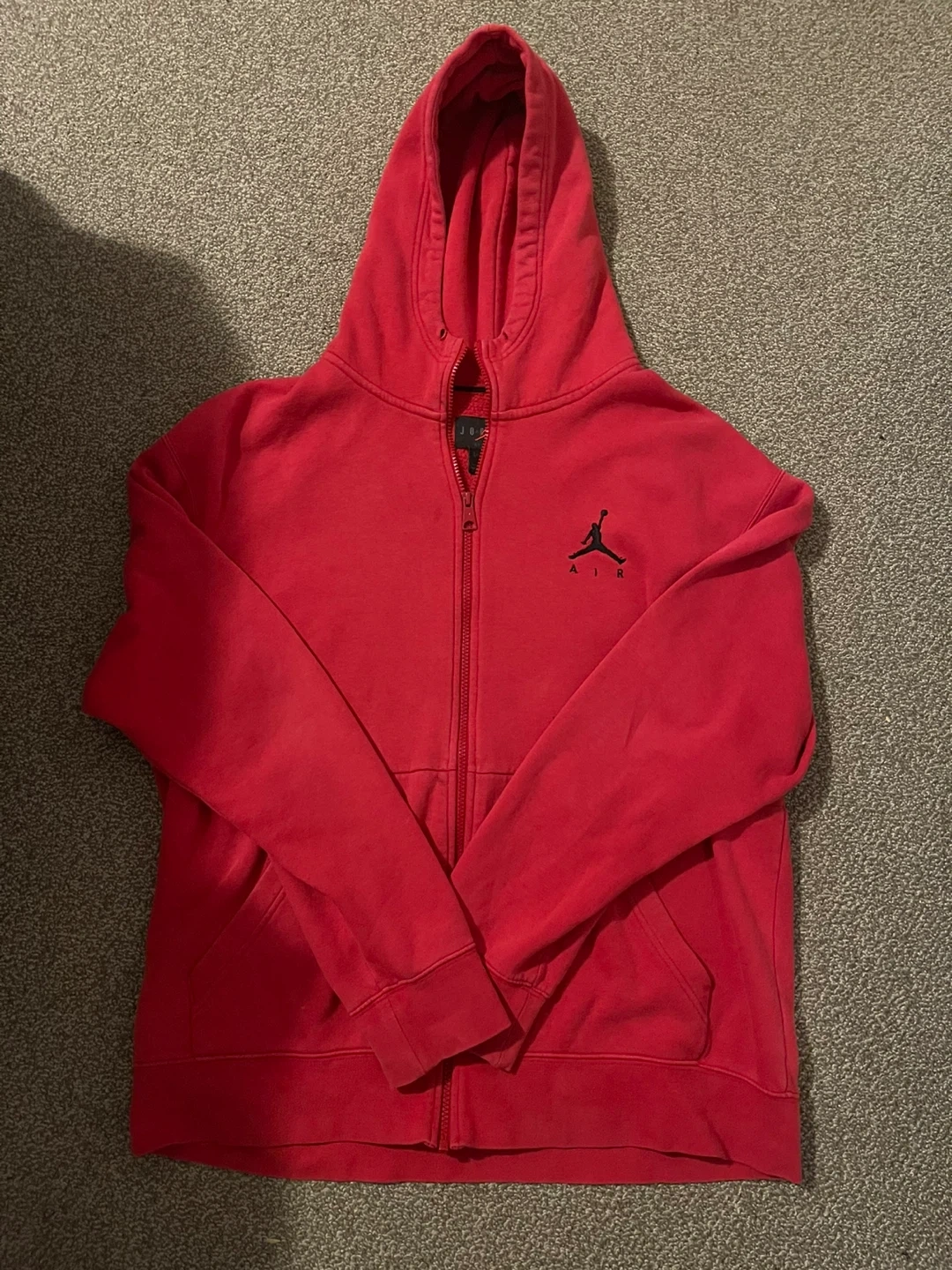 15Nike AIR JORDAN Jumpman Men's Fleece Full-Zip Hoodie no drawstring and color is a bit washed but still good bought 3 years ago only wore a couple times but its still in good condition