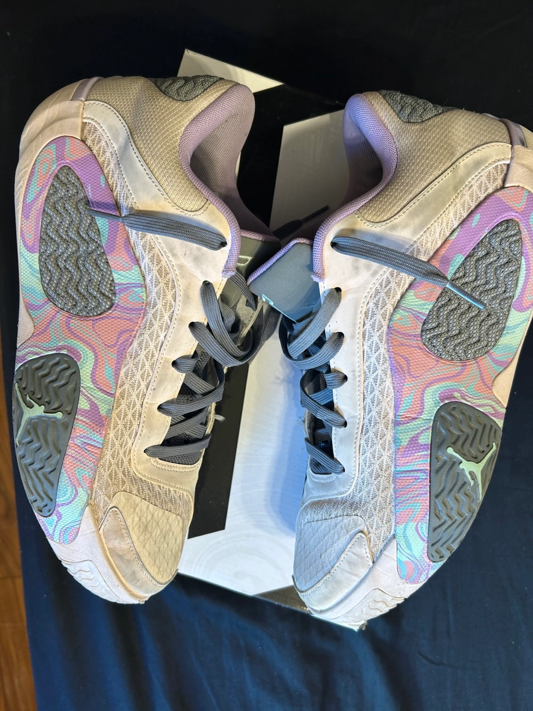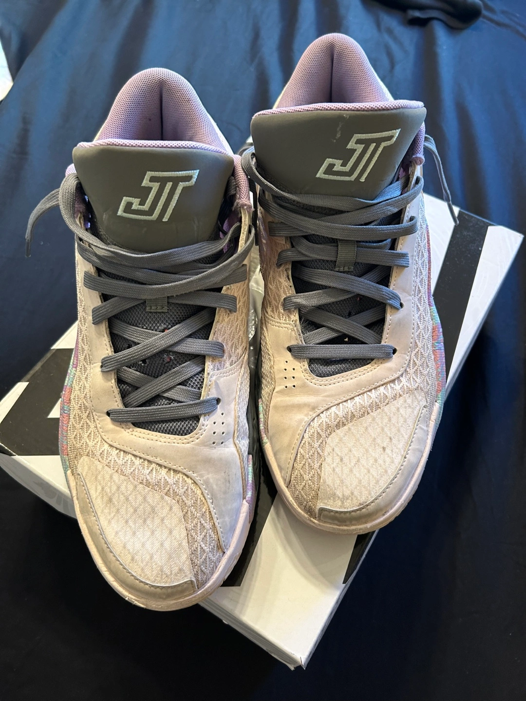 17Selling a pair of Jordan Tatum 2 "Sidewalk Chalk" basketball shoes. They show some signs of wear, but are still in good condition for playing ball or casual wear. Comes with the original box! Only worn indoors.