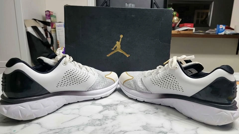 5Brand new Jordan's. Size 10 men's. Wore once on a treadmill and have been in the closet since. Time for a new home. Immaculate shape.
