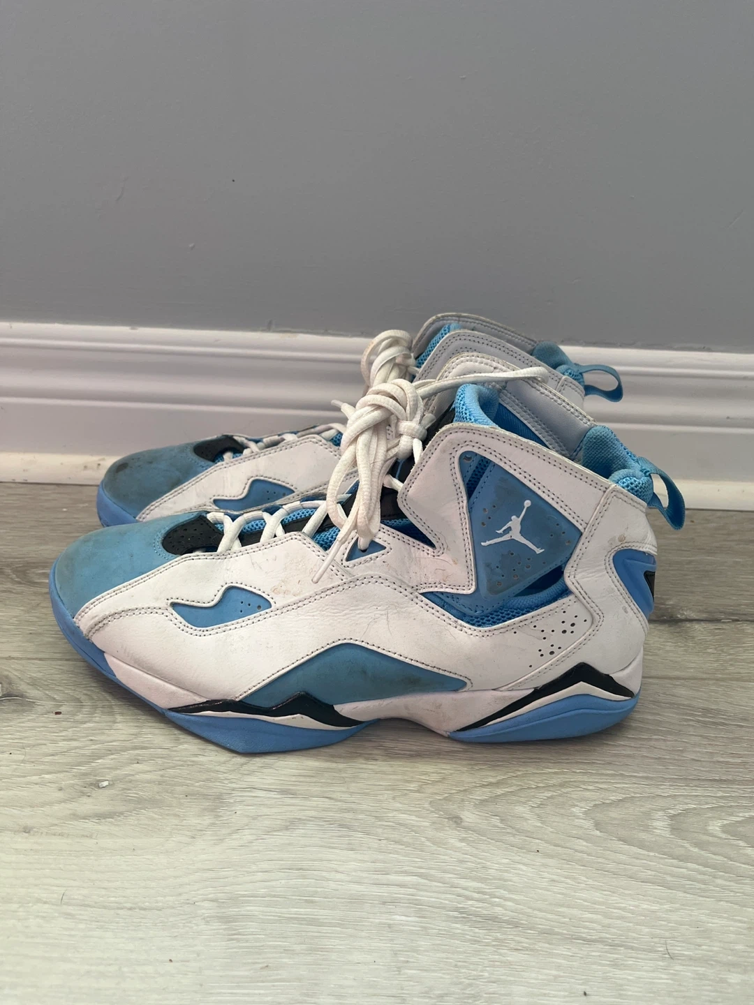 15Selling a pair of Jordan True Flight sneakers in a blue and white colourway. These are a US size 9.5. They have some signs of wear, but still have lots of life left!
