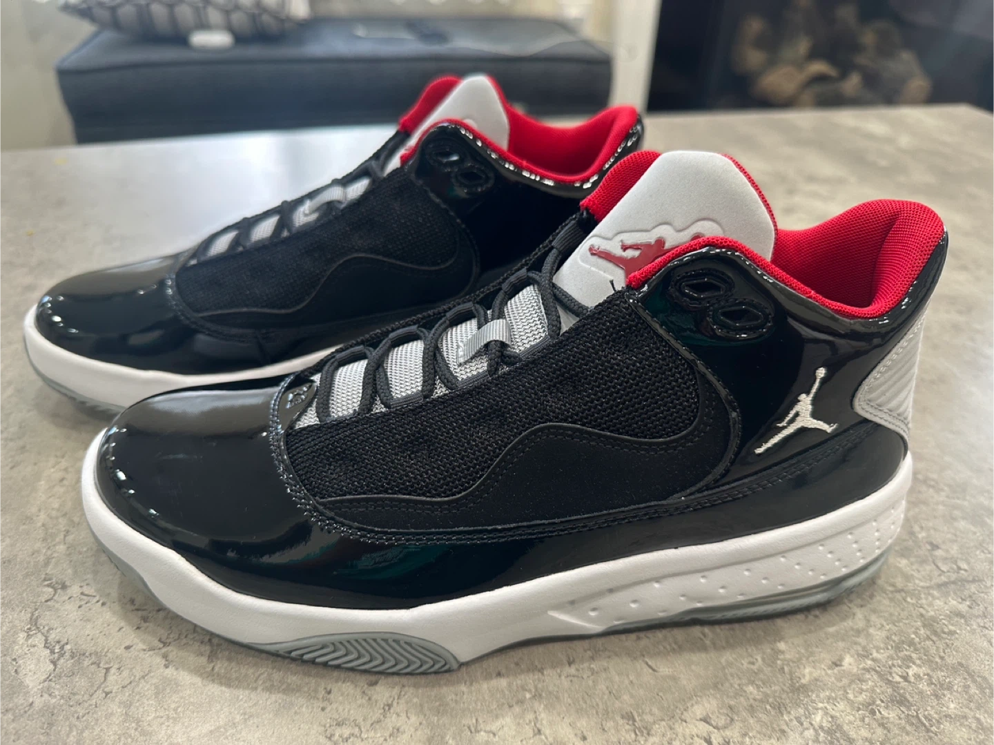 60Selling a pair of Jordan Max Aura 2 sneakers in size US 8.5. These shoes feature a sleek black, red, and grey colourway, offering a stylish look. Perfect for casual wear or hitting the court! It was a gift but never used these ones.
