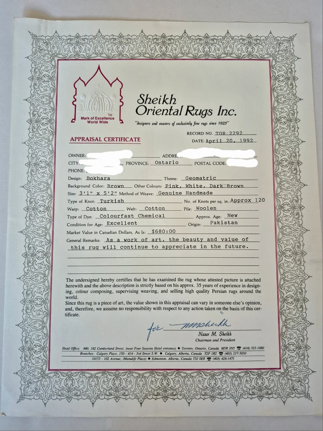 π· See photo of appraisal for all the details. As you can see, it was appraised back in 1992 at $680.
