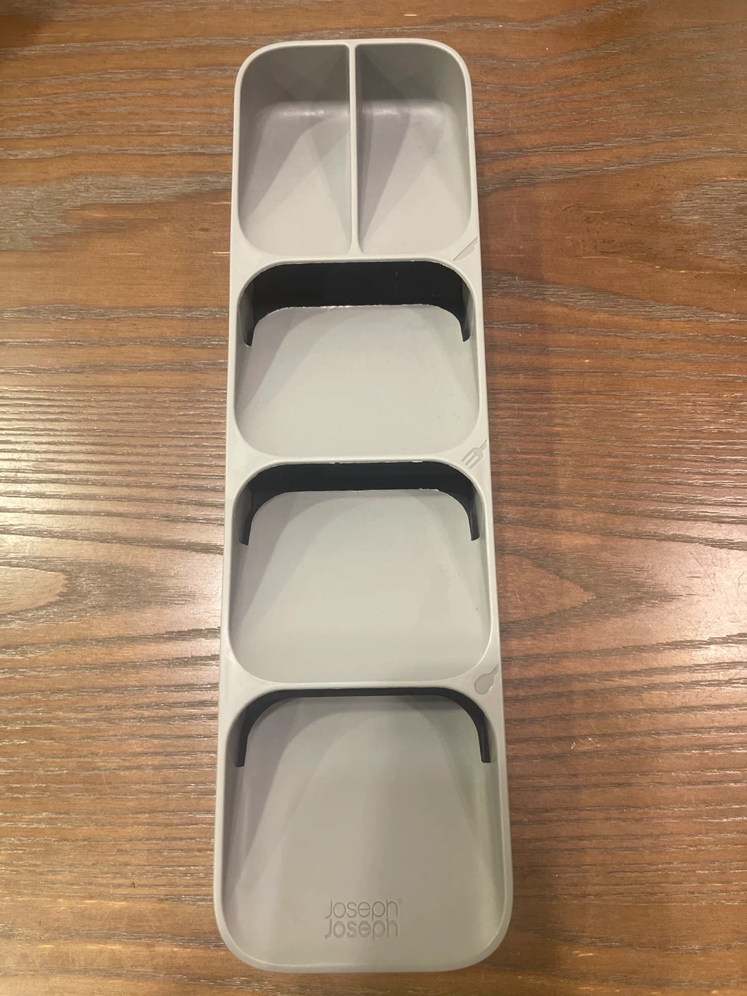 Declutter your cutlery drawer with this Joseph Joseph organizer! It's a clever design that helps you neatly store your silverware and utensils, saving space and making it easy to find what you need Suitable for drawers with a minimum height of 3.25 inches. Dimensions: 15.6 x 4.33 x 2.25 inches.