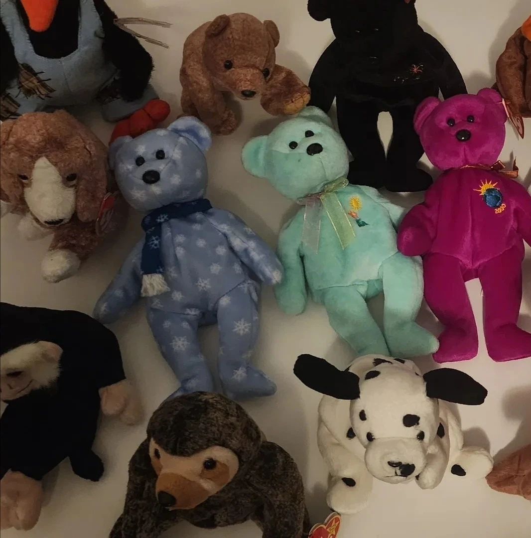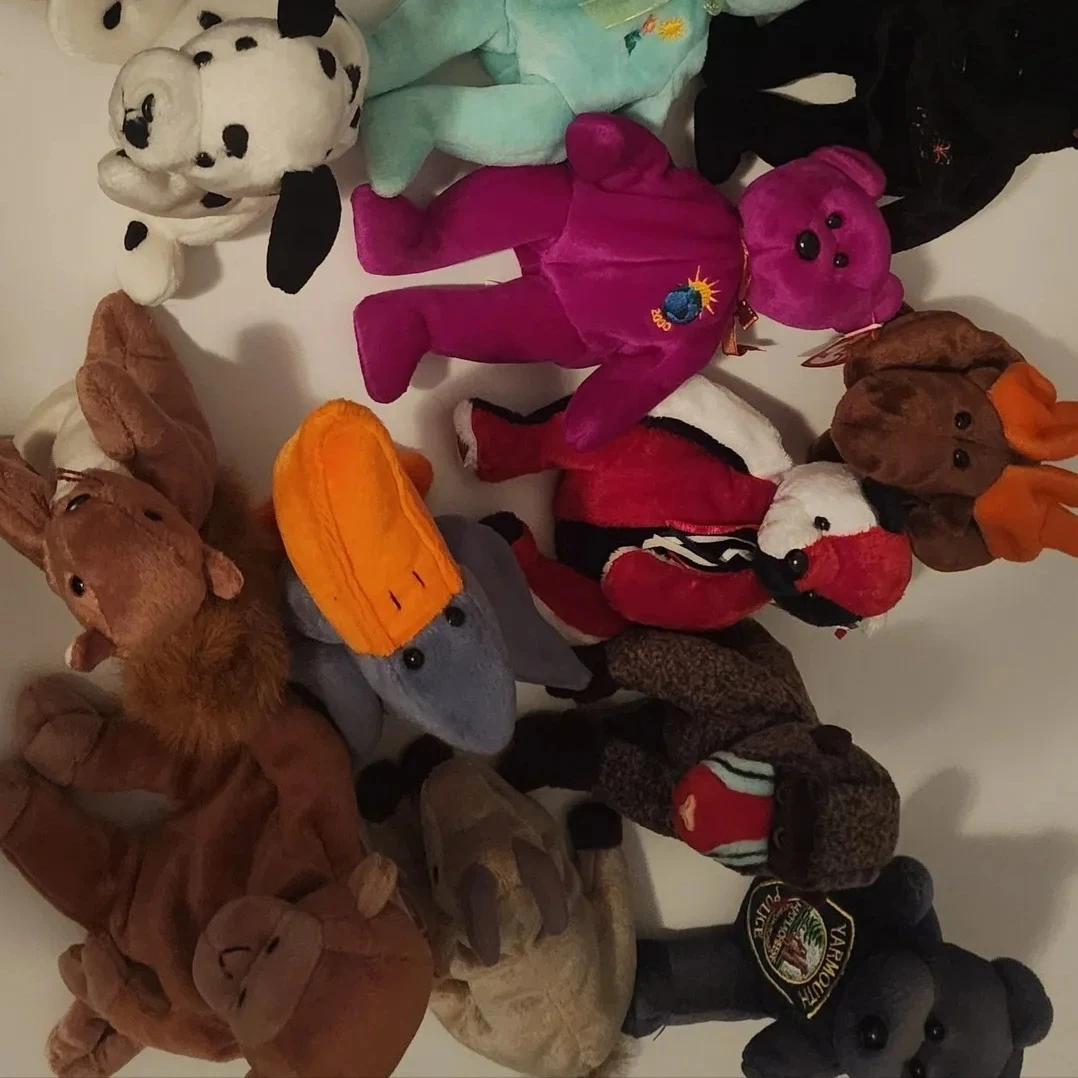Collection of various Beanie Babies plush toys. Various animals and characters included. Great for collectors!