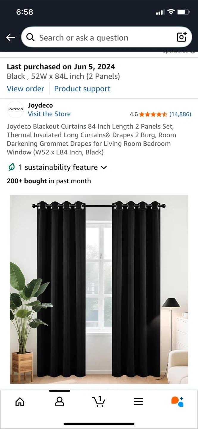 102Selling 6 JOYDECO blackout curtains in black. These curtains are thermal insulated and designed for blackout light each set of two is priced for 32.99 via Amazon (bought six) selling all 6 for $40