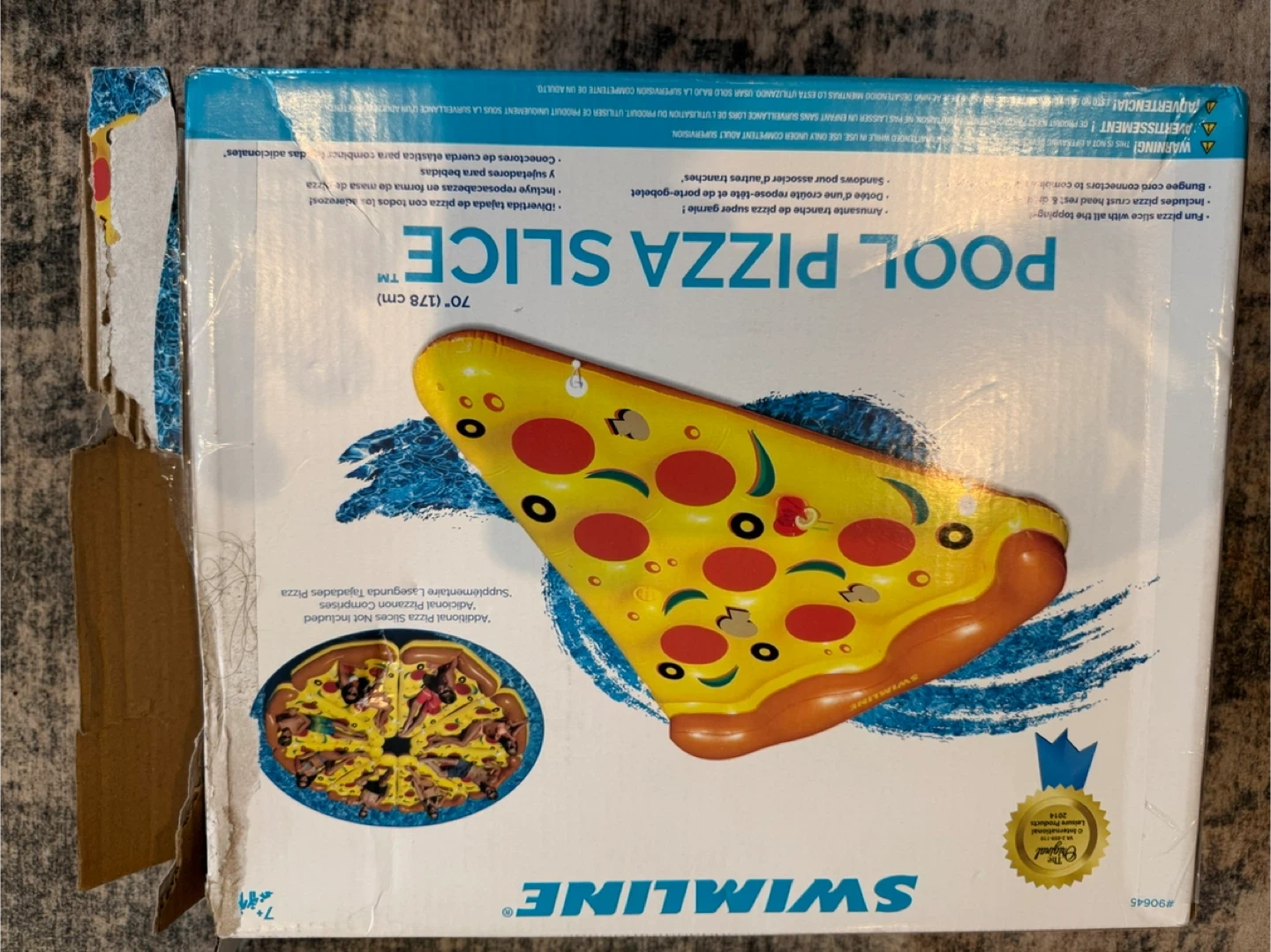 60Selling a fun JOYIN giant inflatable pizza slice pool float! It's extra large and comes with cup holders, perfect for summer pool parties. The product size is approximately 58.75" x 11" x 70.5". This is great for a swim party toy or just lounging in the pool. Originally bought for $44.99!