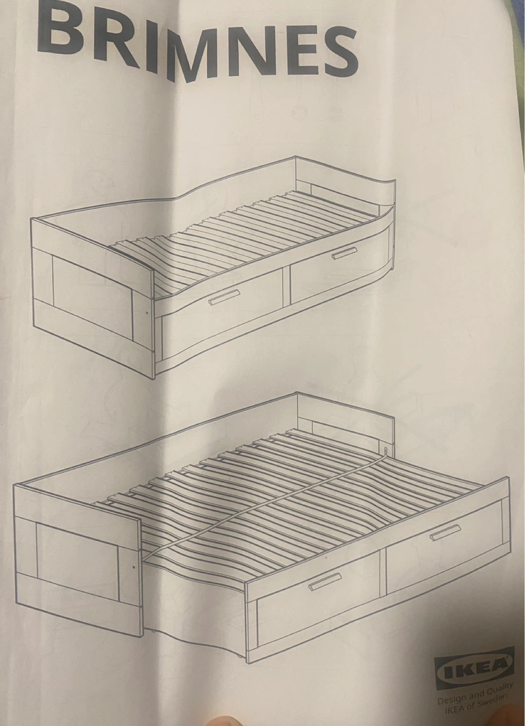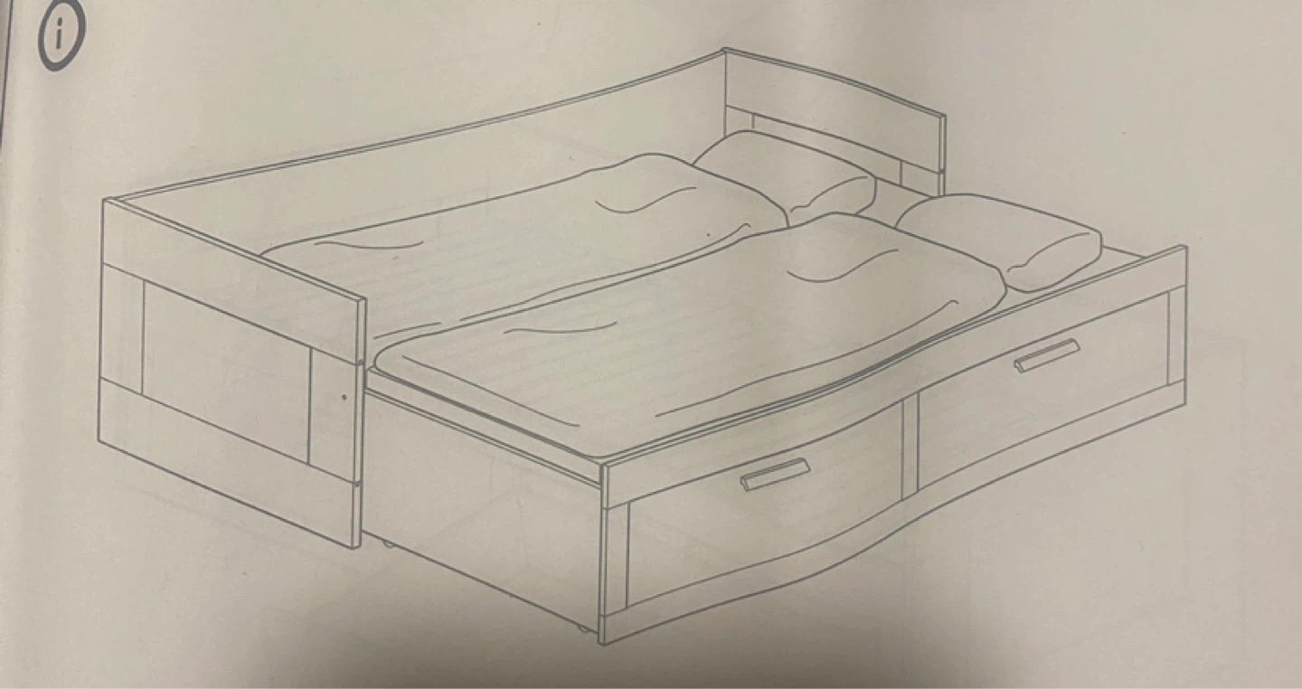 The IKEA BRIMNES Bed Frame is a practical bed with two storage drawers. You can pull it out to make it bigger, changing it from a single bed into a double bed. It is strong and comfortable to sleep on.