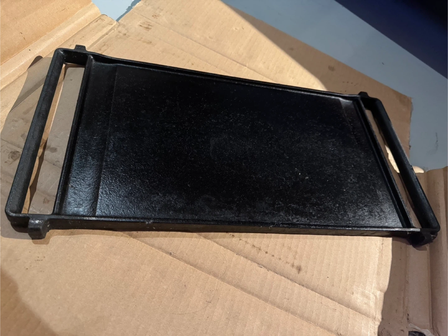 This has been seasoned twice in its lifetime so it is ready for action. It has always been treated with love and respect. Moving and no longer using the same stove so this attachment is ready for a new home.
