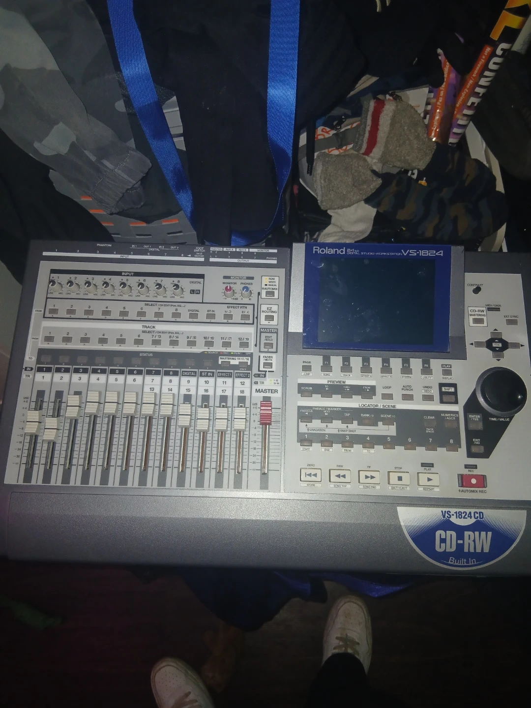 This is a Roland VS-1824CD digital studio workstation. It's an 18-track digital recording workstation with a built-in CD-RW drive. This unit is perfect for aspiring musicians and producers looking to record and mix their own music.