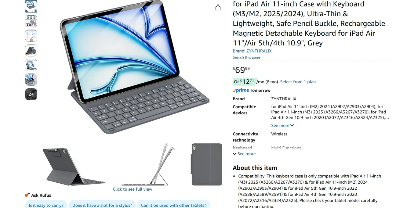 Magnetic Detachable Keyboard for iPad Air 11 BNIB