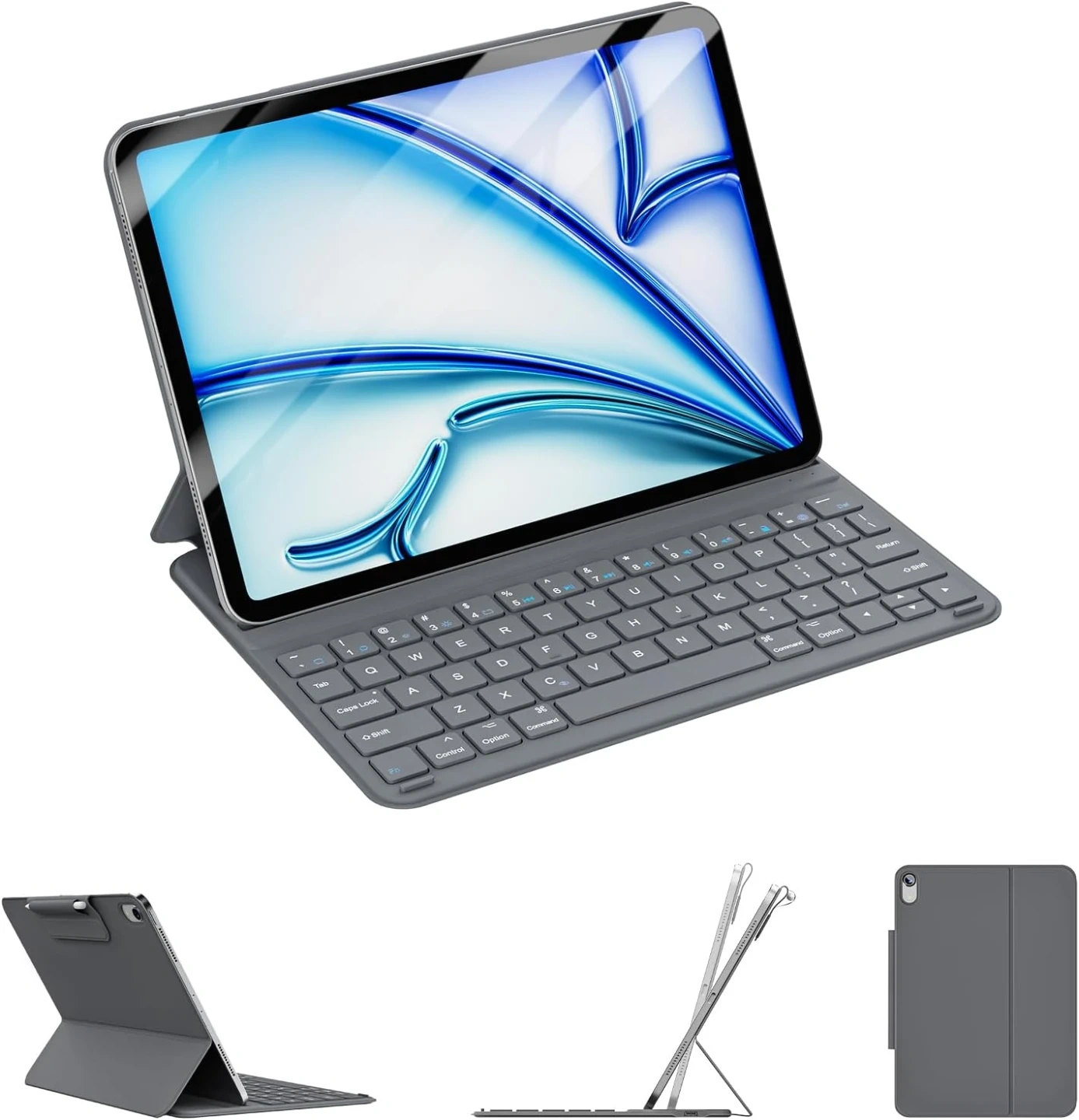 Ultra-Thin & Lightweight, Safe Pencil Buckle, Rechargeable Magnetic Detachable Keyboard for iPad Air 11"/Air 5th/4th 10.9", Grey, Brand New in the Box/Sealed
