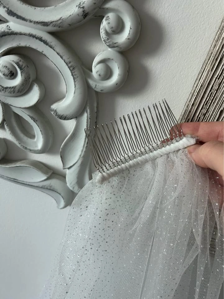 Retail $429. New & flawless sparkle structure veil. Soft white with comb, 80cm. Please respect pricing. God Bless!