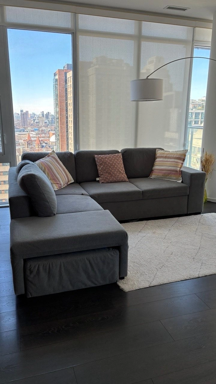 Comfy Grey Sofa Bed with Chaise – Great for Condos
